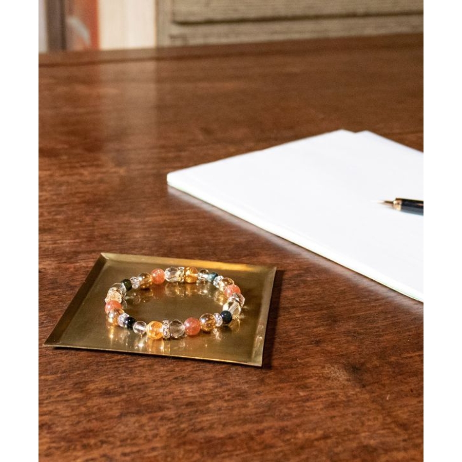 サンストーン(日長石)【自信・積極性・行動力】邪気を払い、マイナスのエネルギーをプラスに変えて、持ち主を守ってくれるといわれています。心にかかった暗雲を吹き飛ばし、生きる希望と幸福感を与えてくれるでしょう。