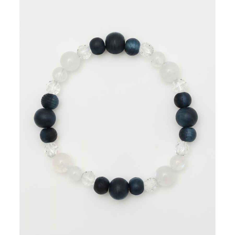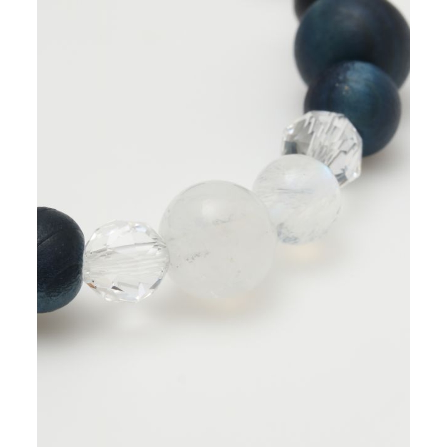 藍染めした国産桧と天然石の組み合わせは、付け心地も軽く、手元を上品に演出します。