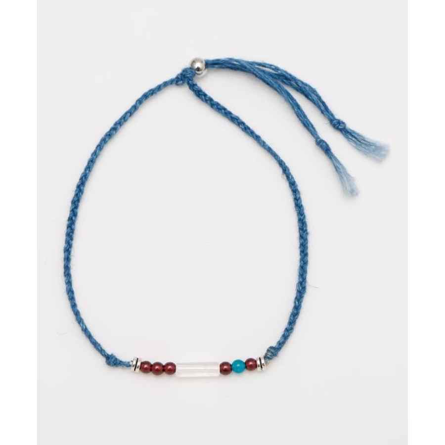 誕生石を藍染紐で組んだアンクレット。日々の暮らしを願いと共に。ガーネット(柘榴石)【努力・成功】 1月の誕生石。 果敢に外へ飛び出す勇気を与え、地道な努力を成功へ導くと云われる。
