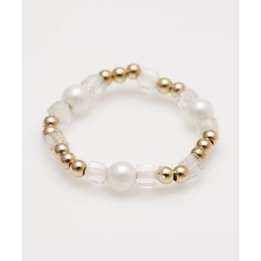 キューブカットの天然石・14KGFのメタルビーズ・真珠を組み合わせたゴムリング。