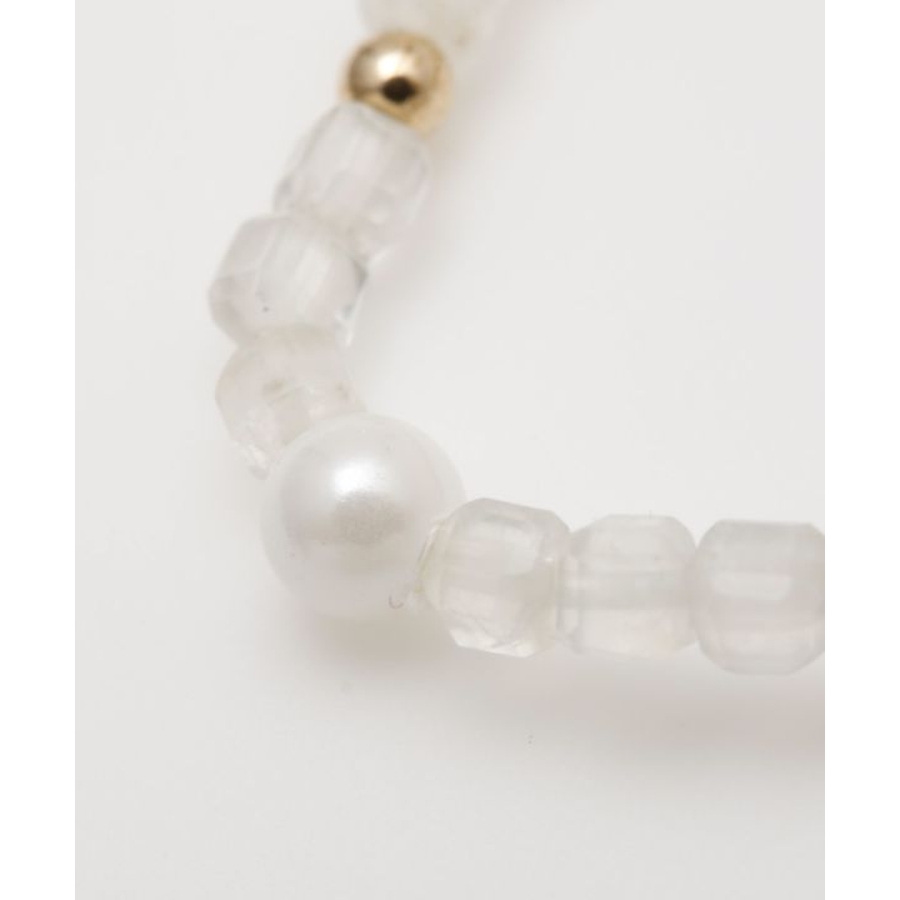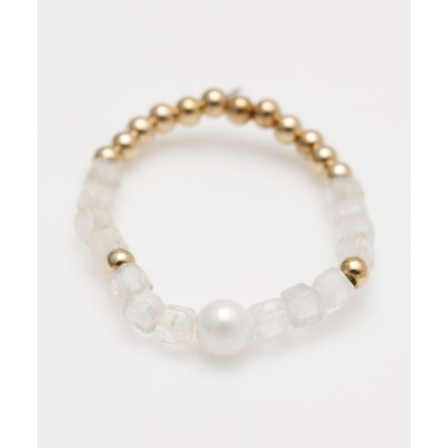 キューブカットの天然石と14KGFのメタルビーズを組み合わせたゴムリング。