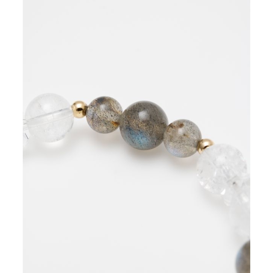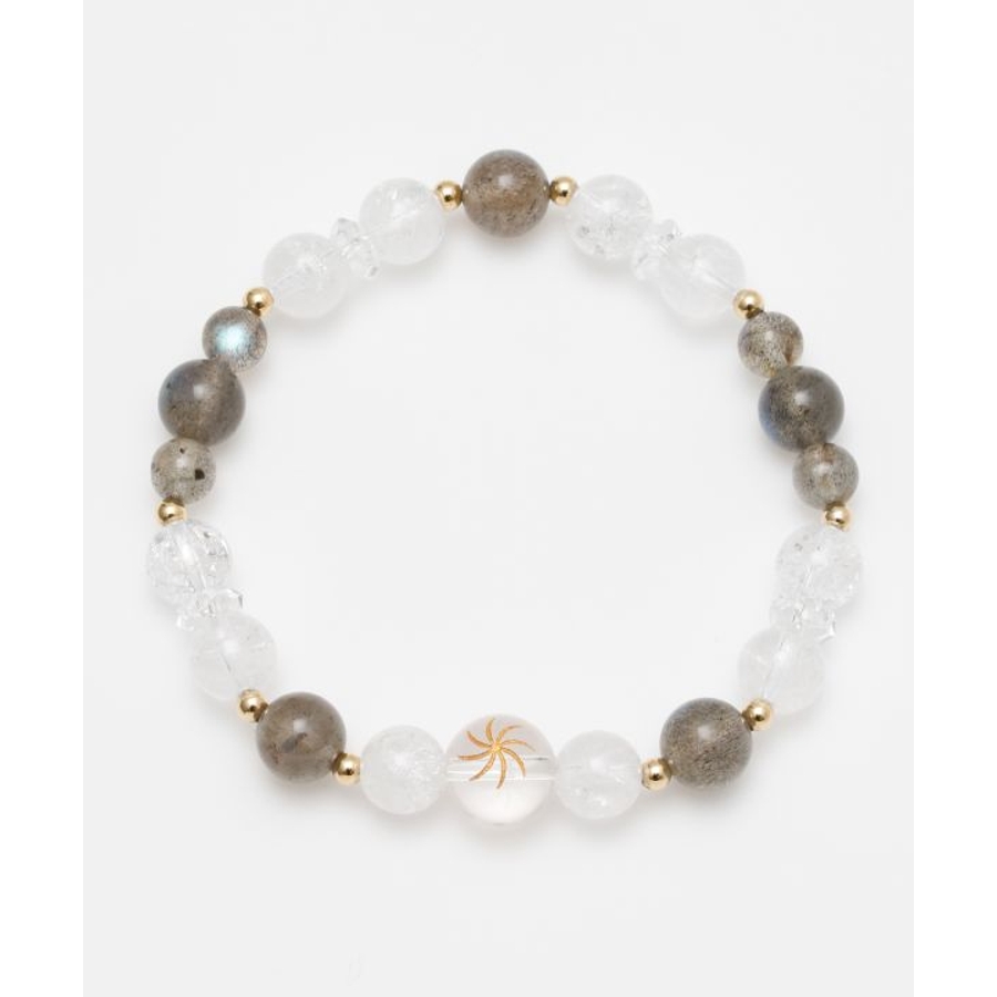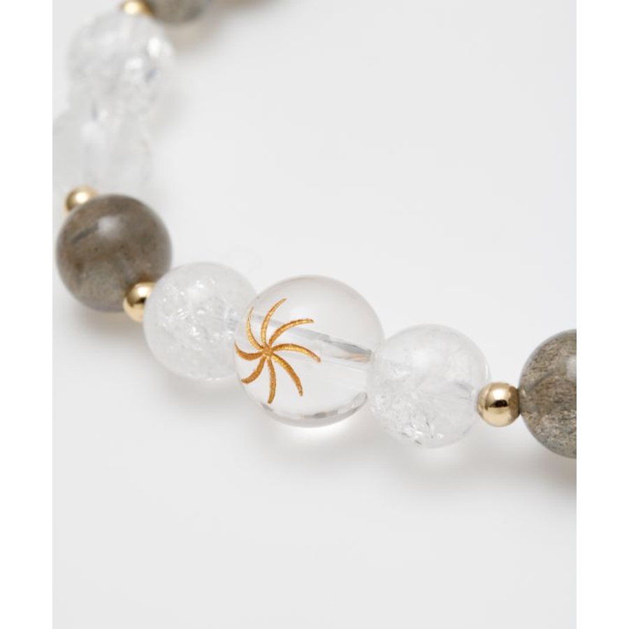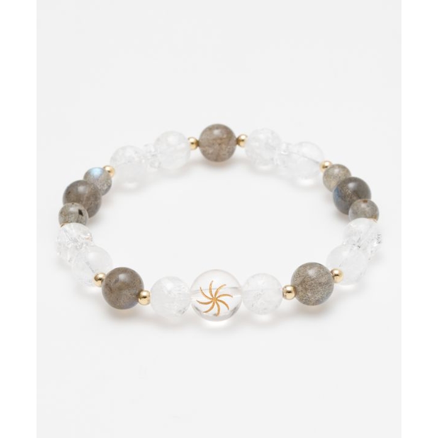 日本神話の神様をイメージしたブレスレット。ラブラドライト:【多様性・自由の象徴】思い込みや既成概念から抜け出し、自由に解き放って、新しい世界や新しい自分に向かってチャレンジする「意識の変革」をもたらしてくれると云われています。クラッククォーツ(爆裂水晶)【心身浄化・邪気払い】クラック(割れ)がネガティブな気を吸収し、持ち主に幸運をもたらすと云われています。水晶の開運力にプラスして、悪運や邪念を吸収し浄化することで、精神的な安定をもたらすことから、心身のバランスを整える健康のお守りとしても人気です。クリスタル(水晶)【幸運到来・疲労浄化】全てを浄化し幸運を招き、潜在能力を引き出すと云われる天然石。邪気吸収の力が最も強く、全能的な力を持つとされています。