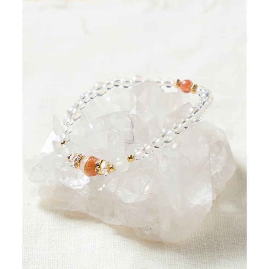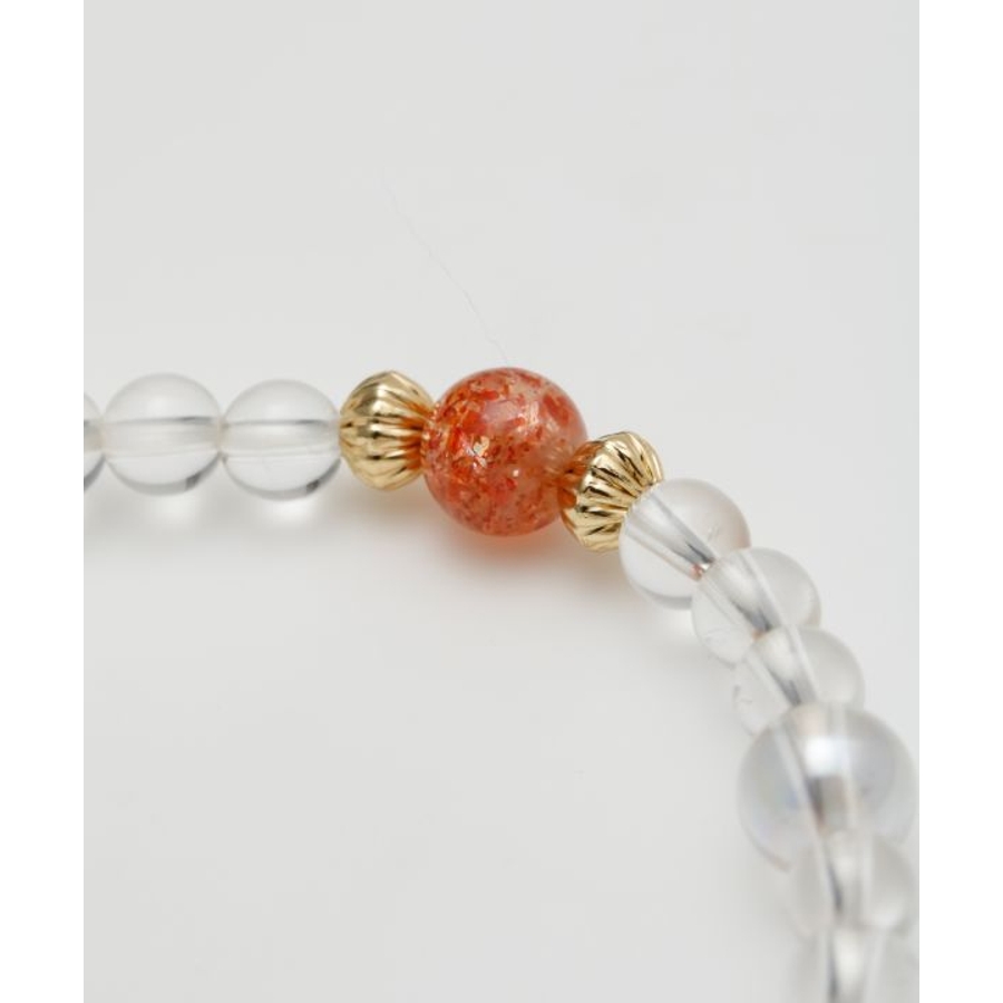 太陽の神・天照大神(あまてらすおおみかみ)と、月の神・月読命(つくよみのみこと)をイメージした数珠ブレスレットです。サンストーンは光を象徴するアマテラスを、レインボームーンストーンは静寂を司るツクヨミを表現。金継ぎを思わせるデザインが、調和とつながりを感じさせます。