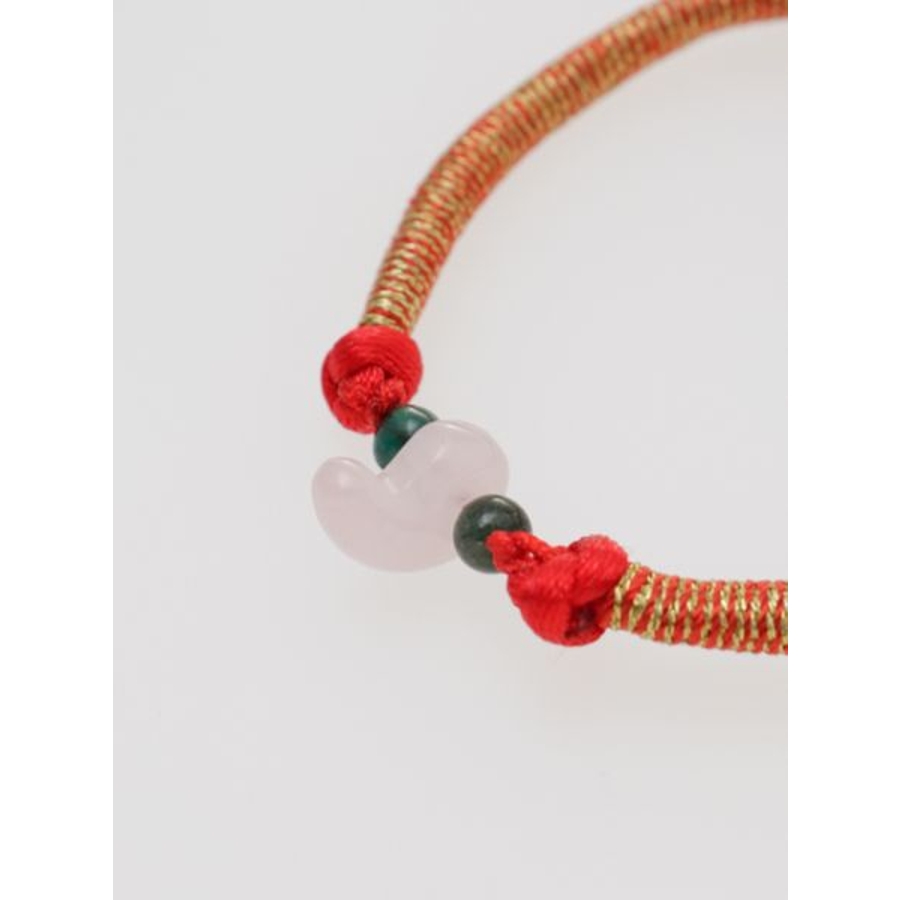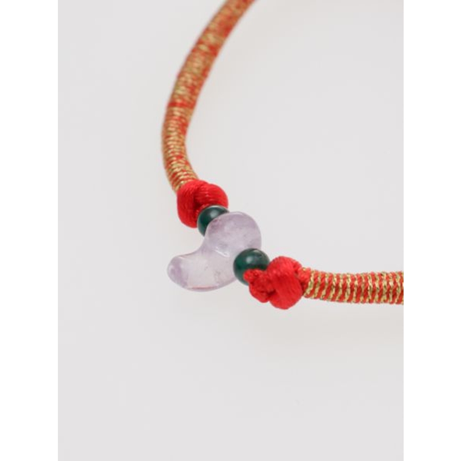 三種の神器のひとつである勾玉の幼児向け御守りブレスレット。金具などは使用していないので、安心して着けていただけます。ローズクォーツ(紅水晶)【恋愛成就】、アメジスト【直感上昇・魅力促進】、クリスタル(水晶)【幸運到来・疲労浄化】
