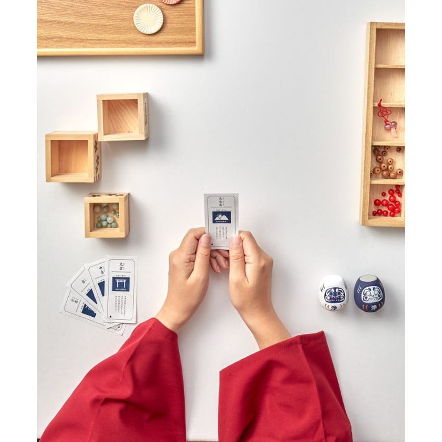 岩座オリジナルおみくじ付きのだるま。おみくじとして楽しむほかにもお部屋のインテリアとしてもおすすめです。暮らしを浄らかにする開運おみくじは、「大大吉」「大吉」「吉」「中吉」「小吉」の5種類。※おみくじはだるま1個につき1枚ひくことができます。