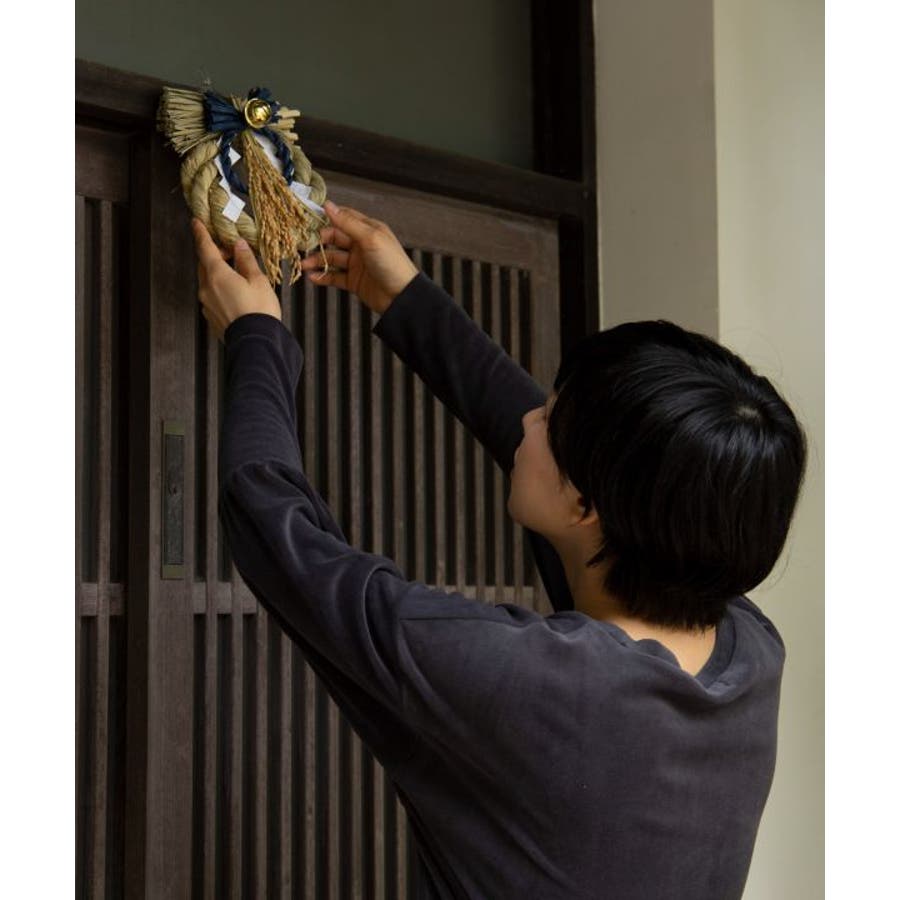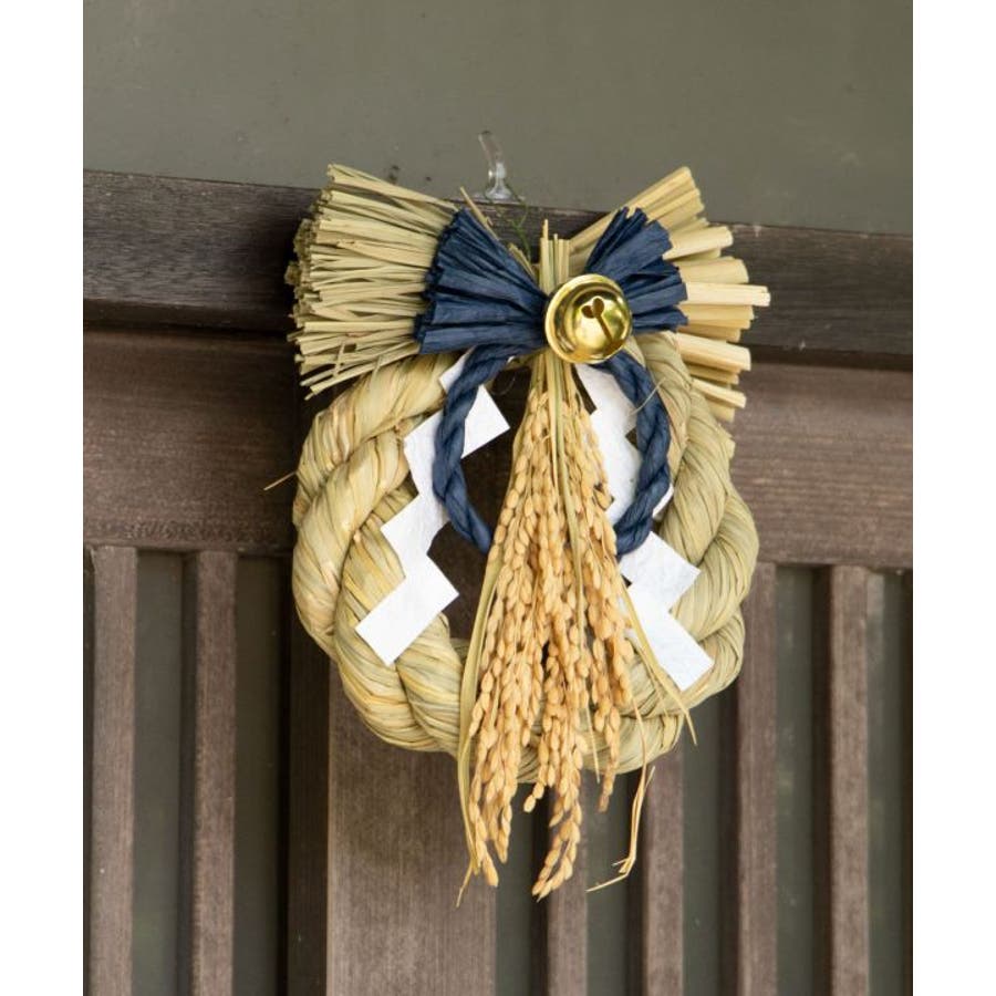 神聖を表す「紙垂」、豊穣を願う「稲」を用いたシンプルな色合いの輪飾りです。