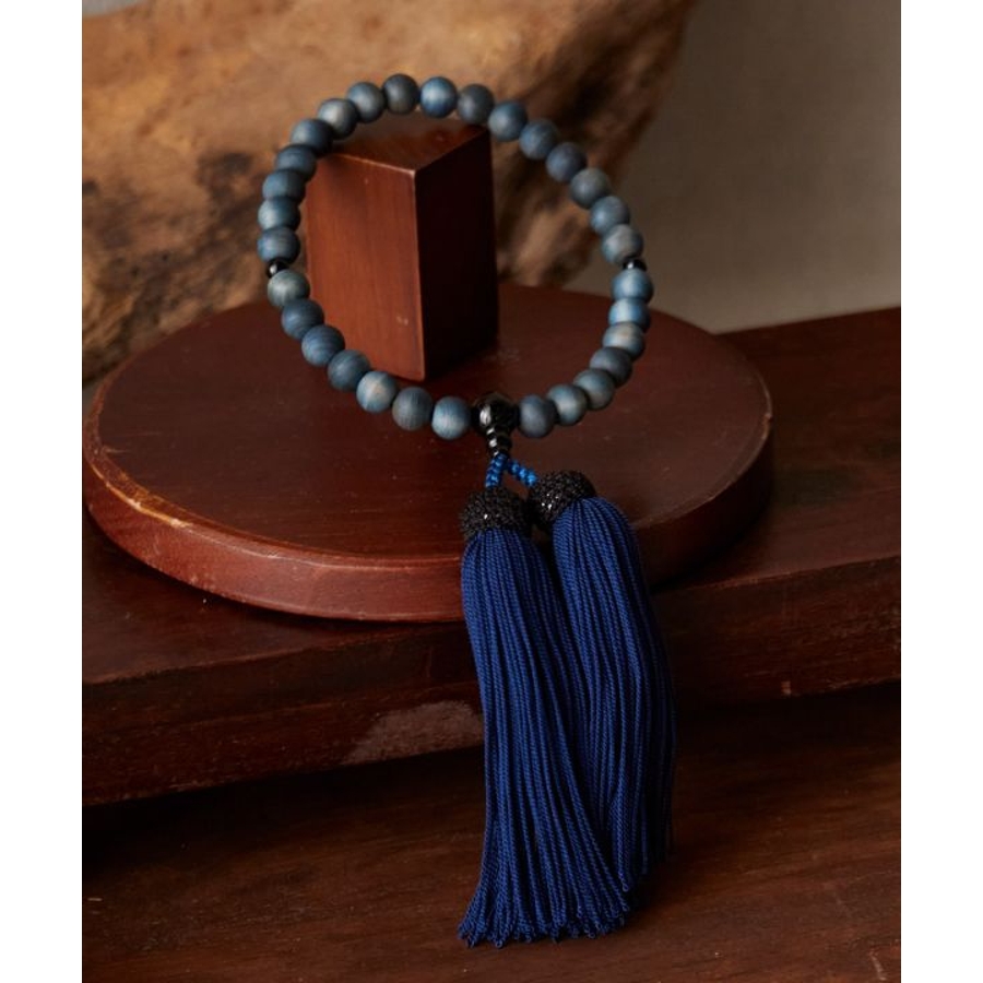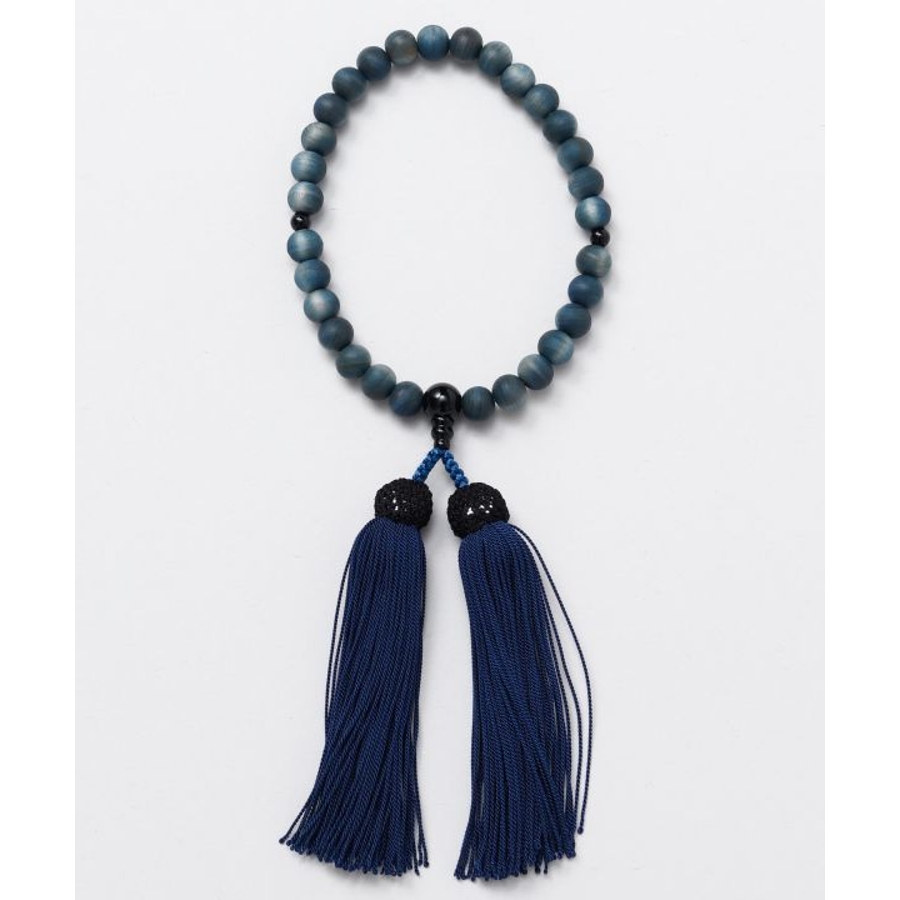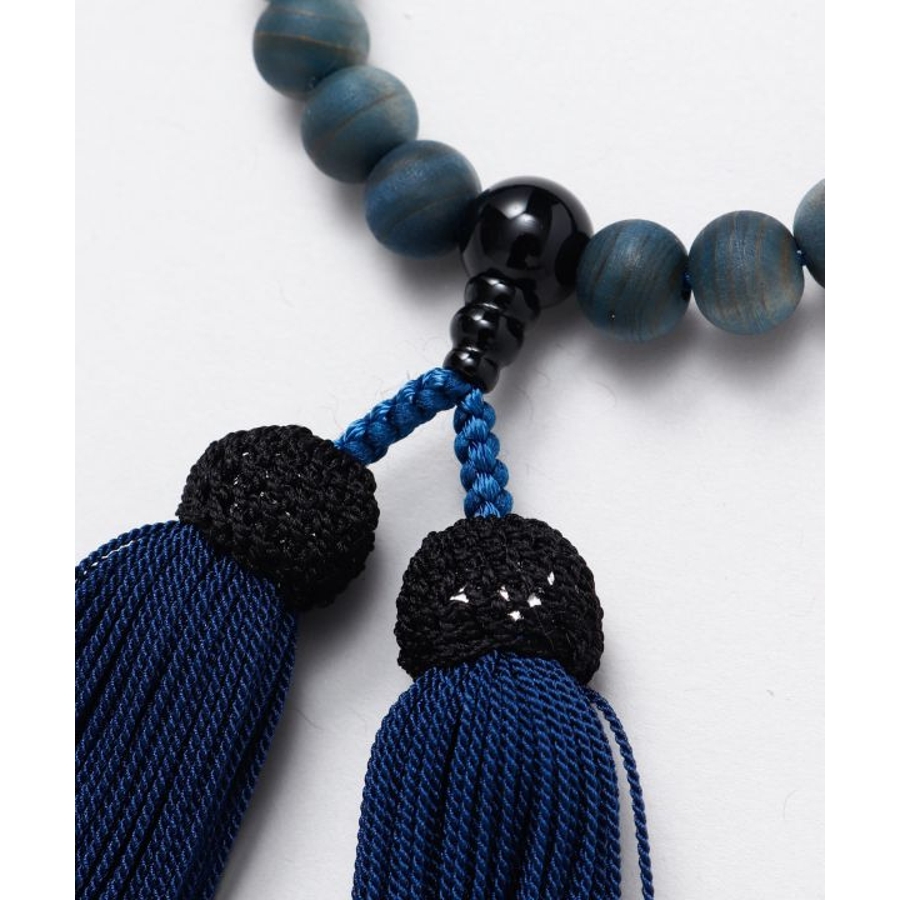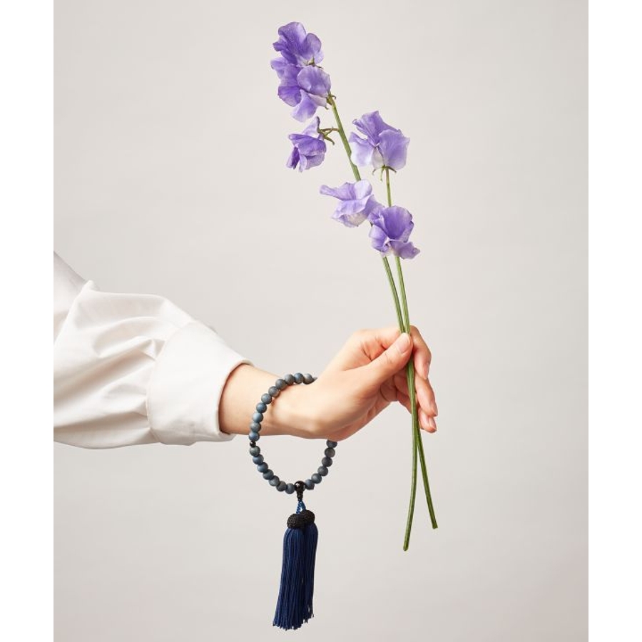 平安遷都より一千年をこえる長きに渡り脈々と受け継がれてきた伝統の技を重んじ、格式のある念珠製作に努める傍ら、自由な発想による斬新なデザイン商品も手掛けている 土屋念珠 で作られたお念珠。藍染の珠で作られたこだわり仕様。専用袋つきなので、気軽にお念珠を持ち運ぶことが出来ます。