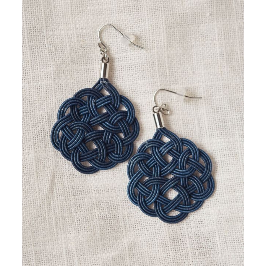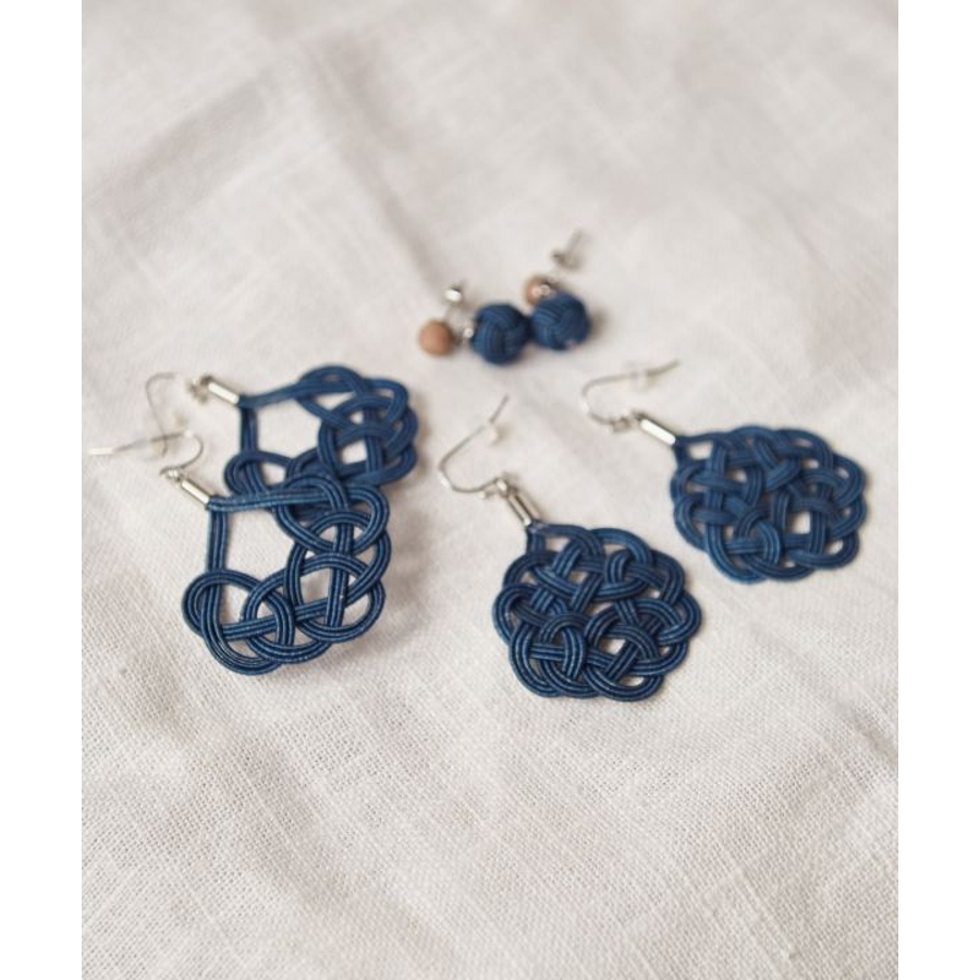 本藍染 徳島のすくもで染められた水引を使用したピアス。大ぶりながらも上品さを感じられるアイテムです。