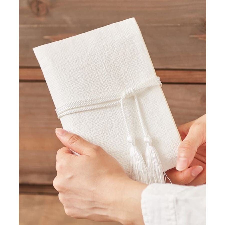 洗練された白を基調としたお浄めシリーズ。日本三大和紙「美濃和紙」を使用。御朱印を入れて紐をぐるりとまわして留めて使います。