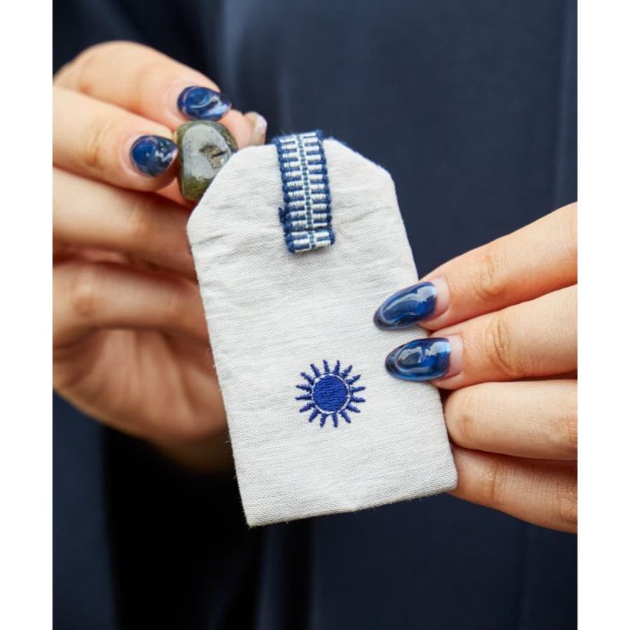 アマテラス/ツクヨミ/スサノオの刺繍がワンポイントの御守。近江麻を使用しています。悪を祓う力があると云う麻生地で作ったお守りは、大切なものを入れたり、想いをしたためた紙を入れても好し。紐には倉敷市で作られた丈夫な真田紐を使用し、チャームなどをつけることも可能です。