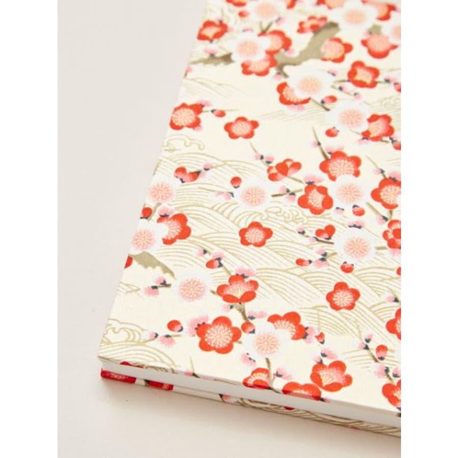 梅の花言葉は「不屈の精神」「高潔」。着物のような艶やかな柄が、雅な御朱印帳です。神社とお寺のどちらでもご使用頂けます。