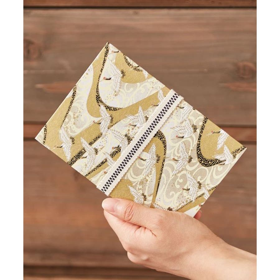 鶴を一面にあしらった大胆な一冊。鶴は鳥類の中では寿命が長いことから、「長寿」の縁起物といわれています。 また、同じ相手と一生連れ添う鳥としても知られているため「夫婦円満」の意味もあります。神社とお寺のどちらでもご使用いただけます。