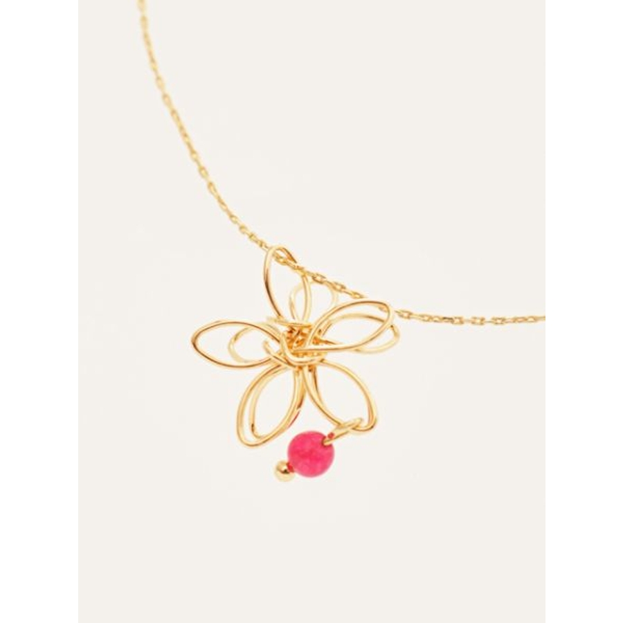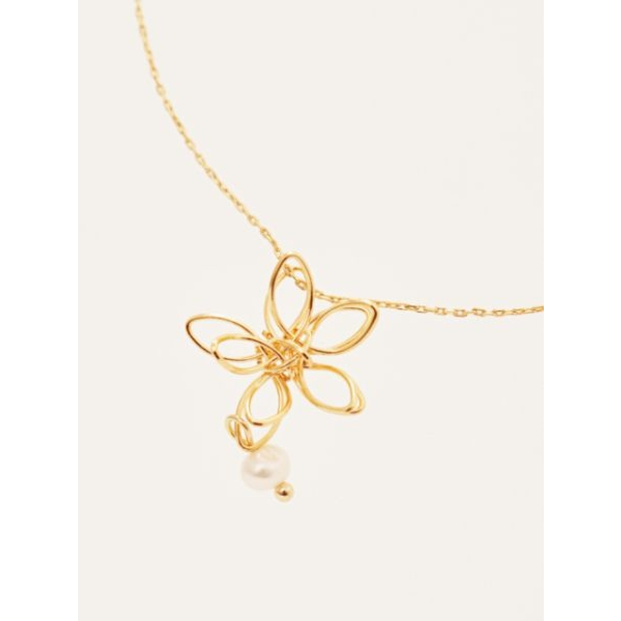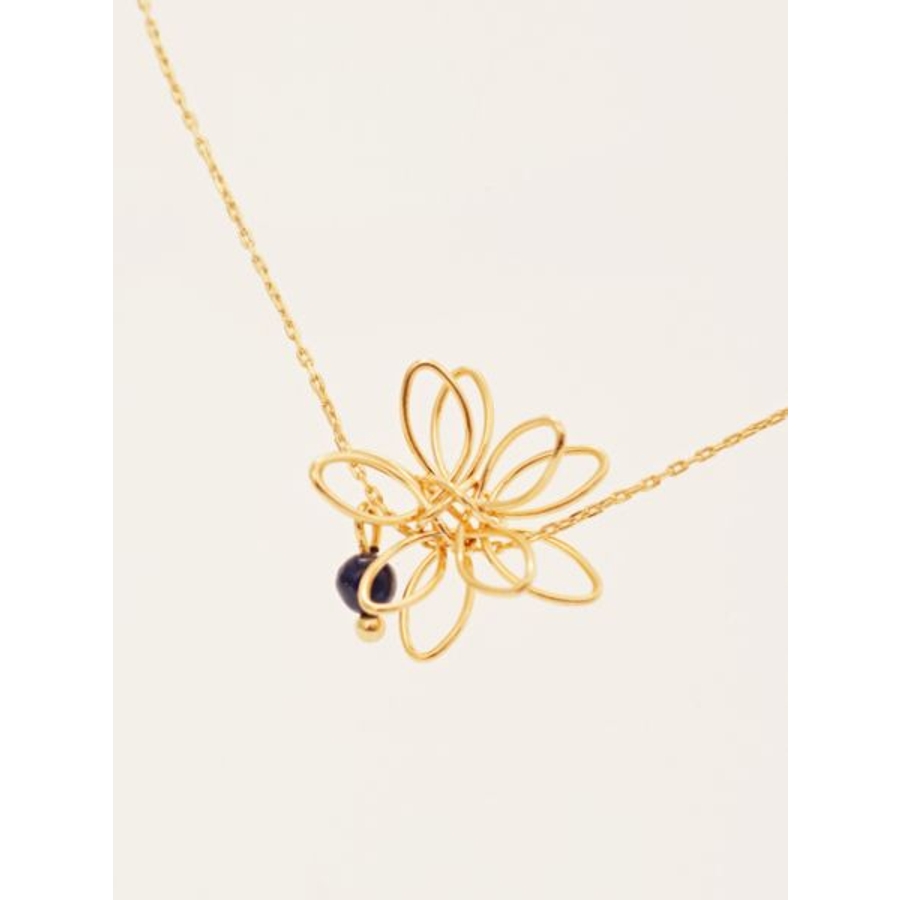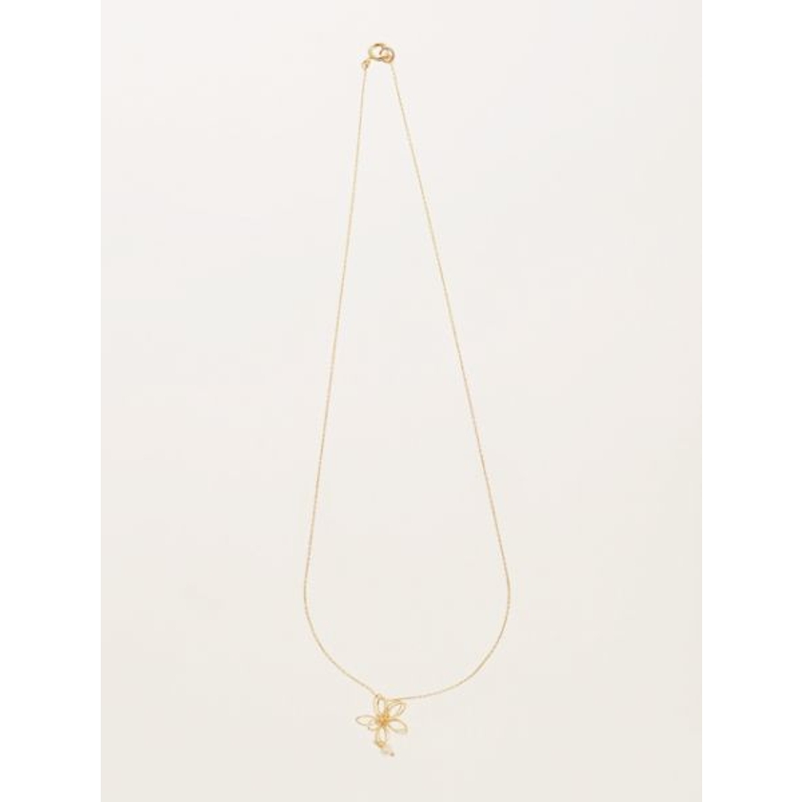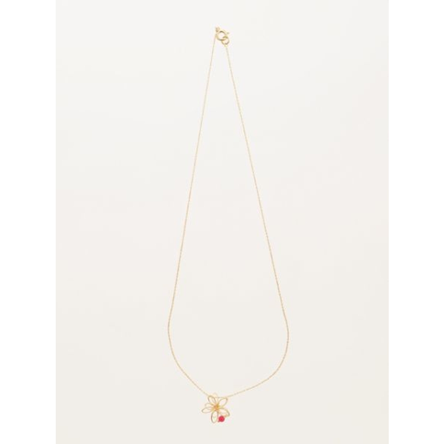 立体感のある花モチーフと、一粒石を合わせたネックレス。女性らしい、優しい印象を与えます。