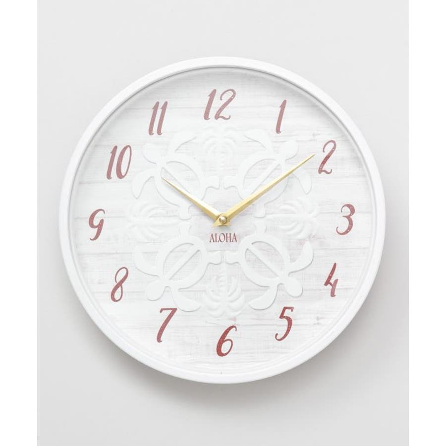 ハワイアンキルトのモチーフを立体的に凹凸で表現した時計。盤面はガラスです。シンプルなデザインなので場所を選ばずお使いいただけます。単3電池2本使用(別売り)/保証書付き