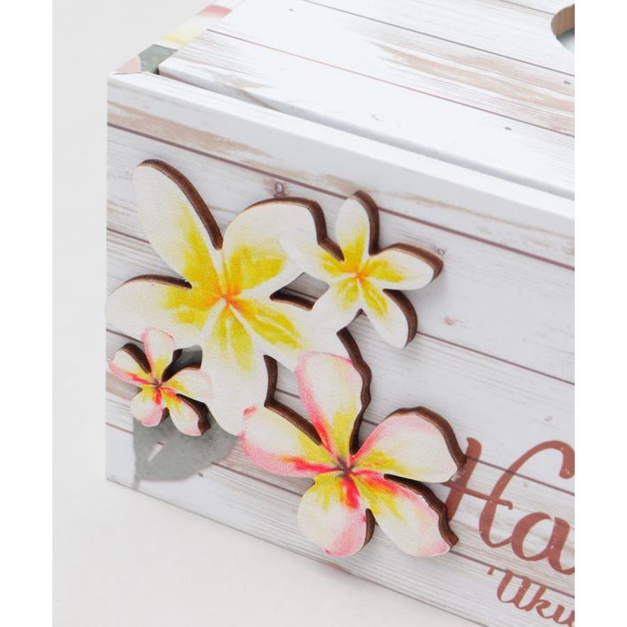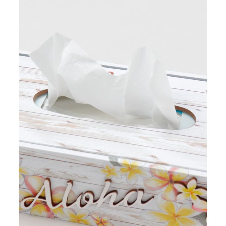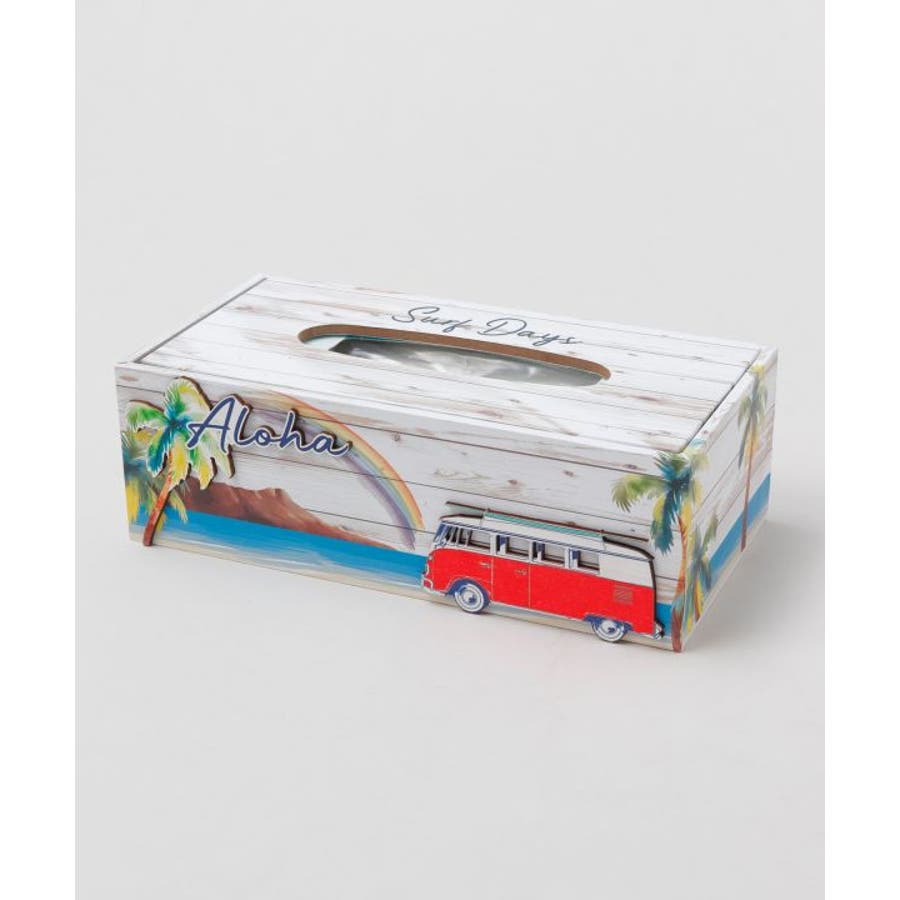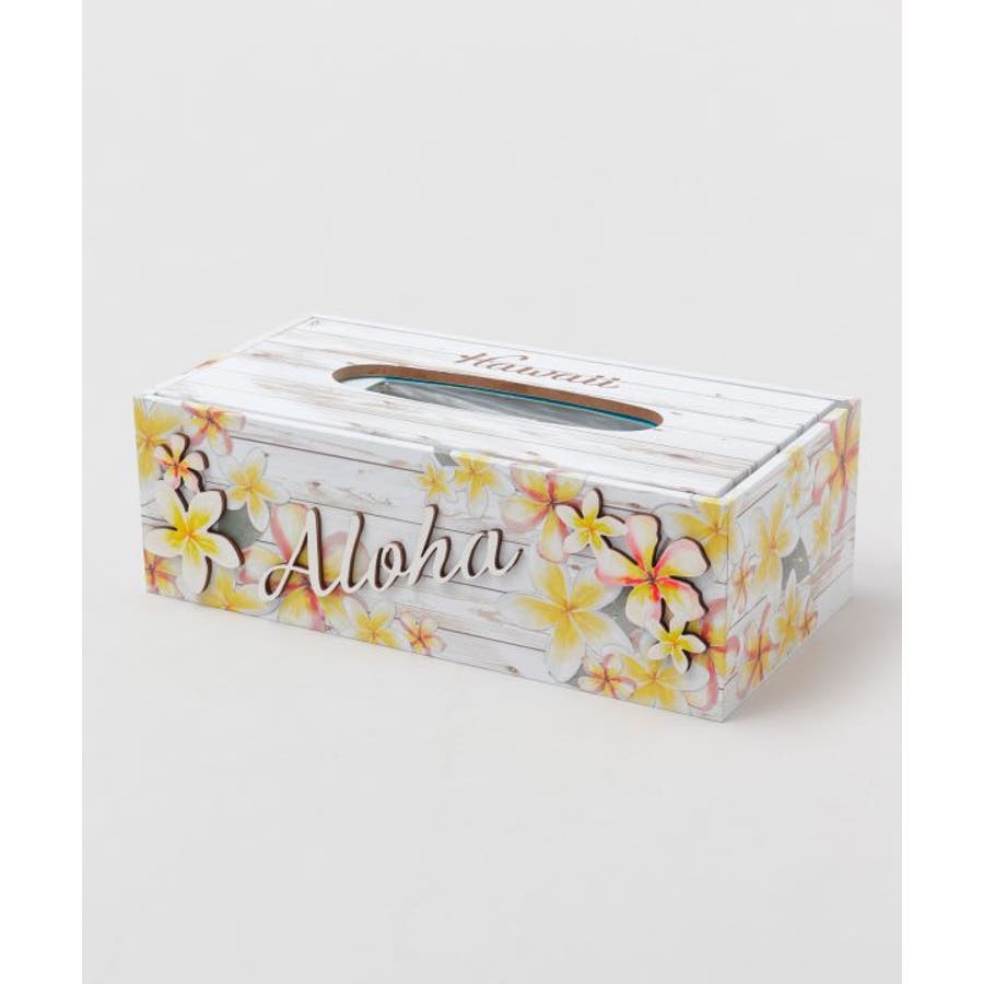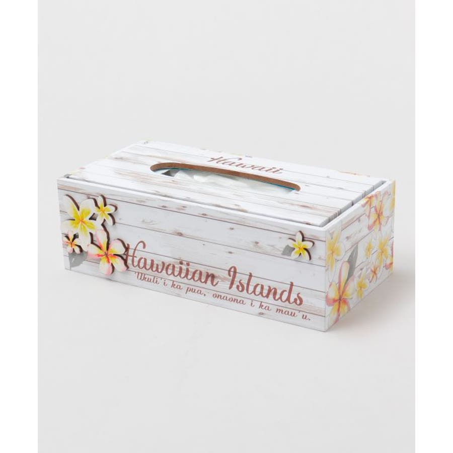 ハワイの素敵なシーンやプルメリアが描かれた箱型のティッシュケース。フタが沈み込むので中身が減っても取りやすく、ボックス、ソフトタイプ両方使えます。