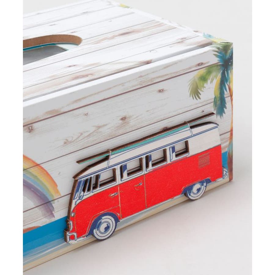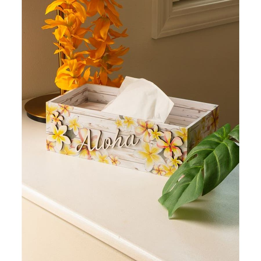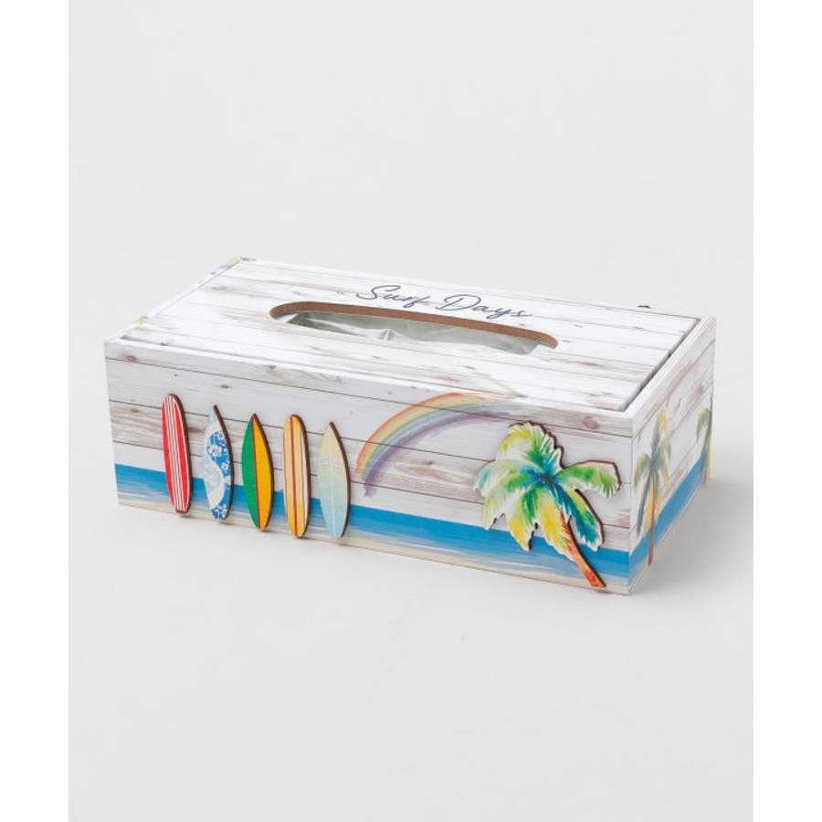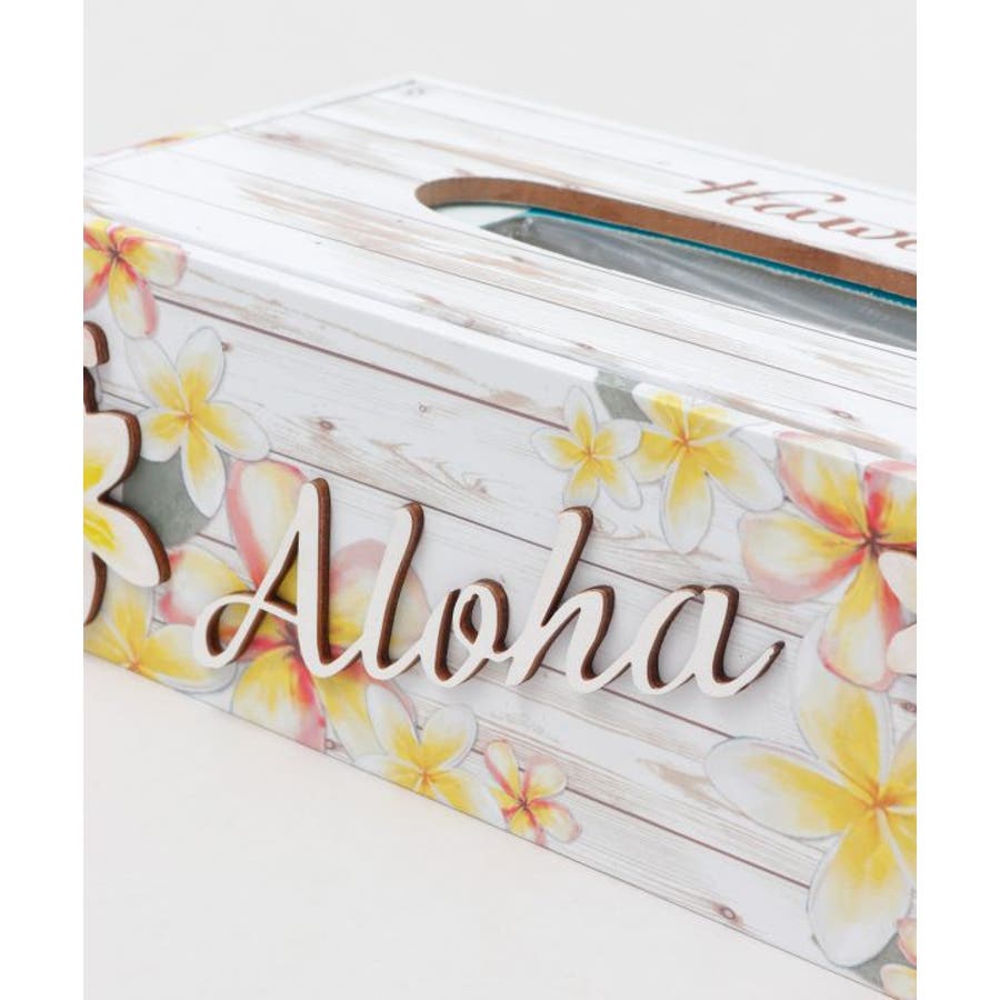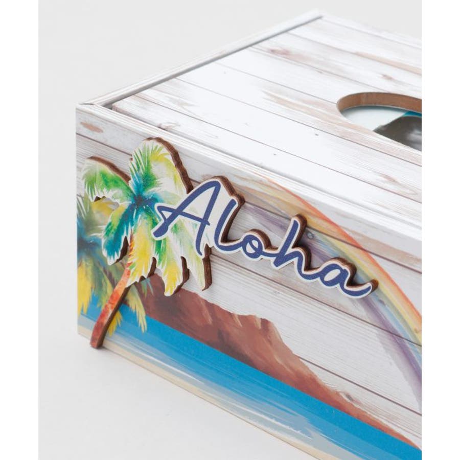 ハワイの素敵なシーンやプルメリアが描かれた箱型のティッシュケース。フタが沈み込むので中身が減っても取りやすく、ボックス、ソフトタイプ両方使えます。
