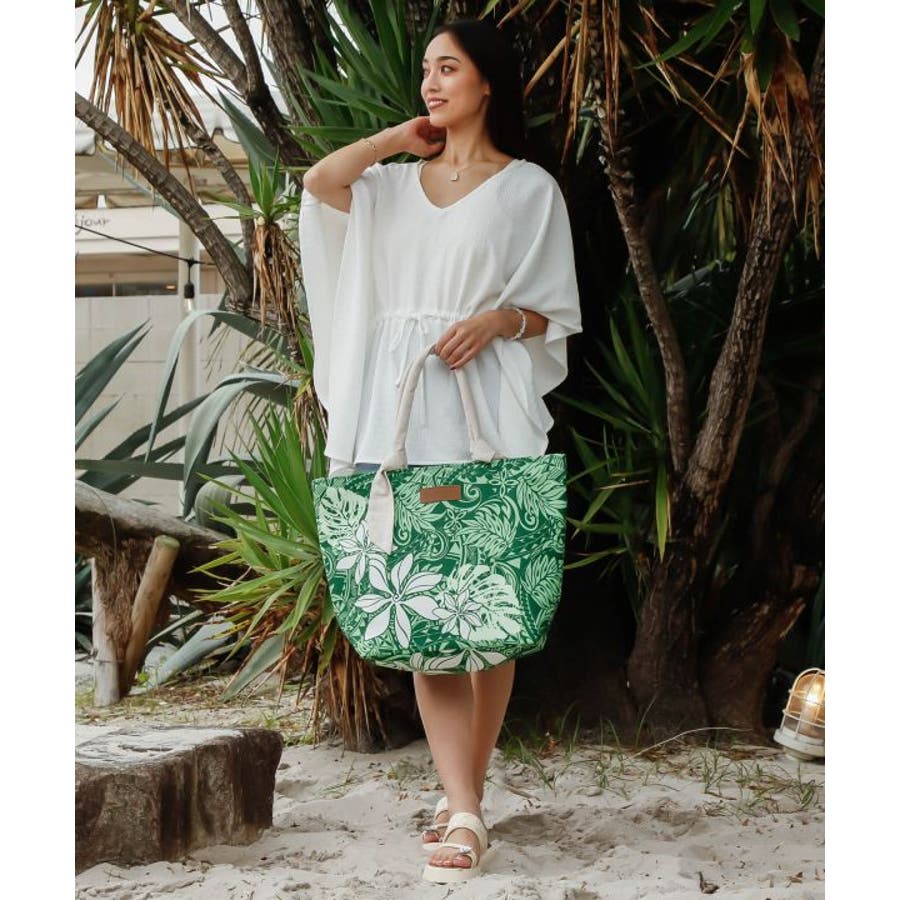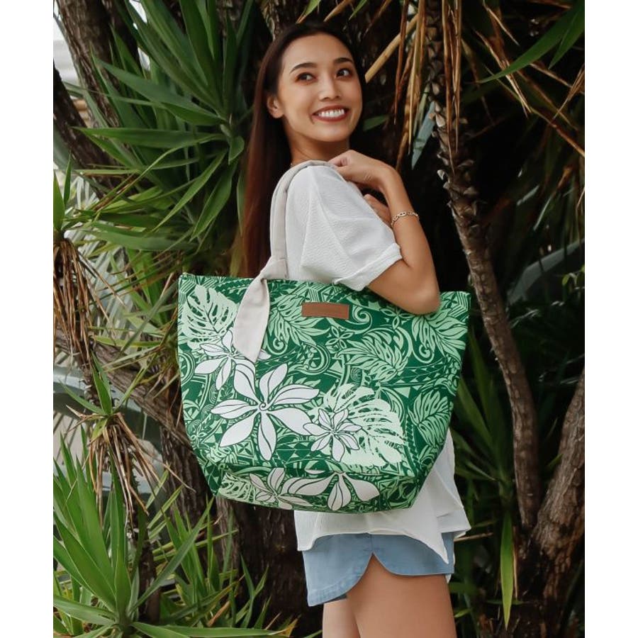 軽やかで大容量のトートバッグ。肩掛けできる長めのハンドルが便利で、通勤や旅行にもぴったり。柔らかな素材感とハワイらしいナチュラルな雰囲気が魅力。シンプルながら存在感のあるデザインです。