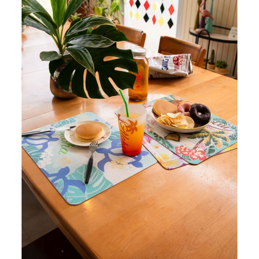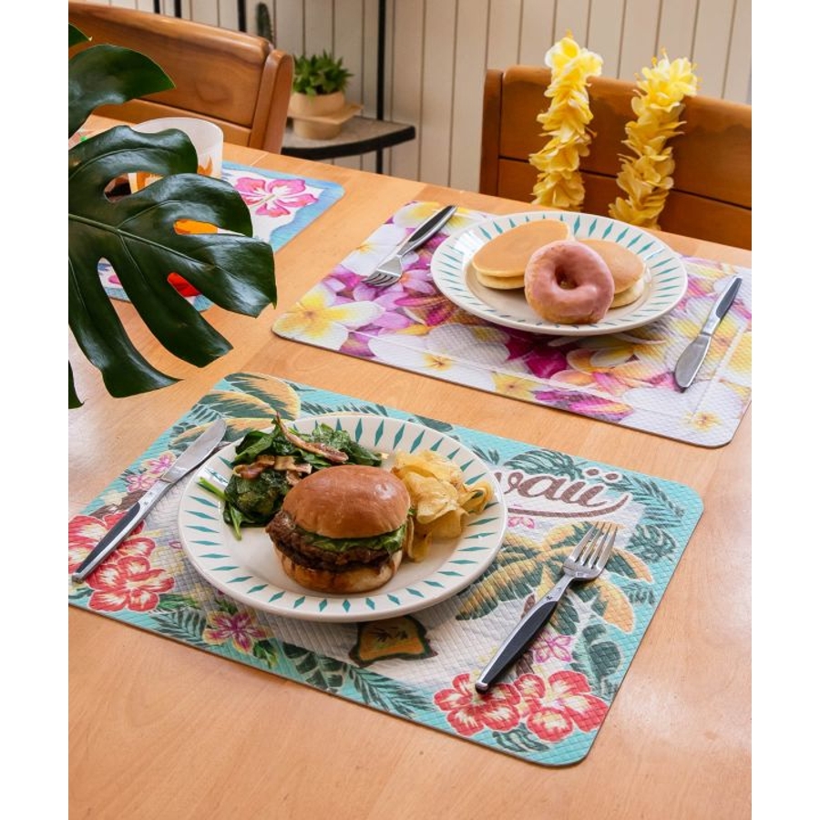 水しぶきや油汚れもサッとひと拭き、 お手入れ簡単なプレイスマットです。ハワイの風景のデザインが施されており、おうち時間をハワイ気分で楽しませてくれます。