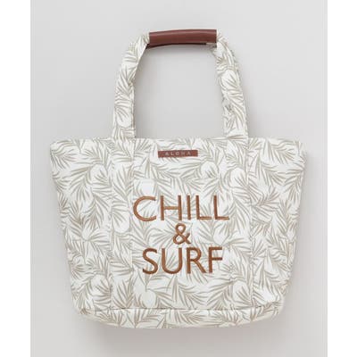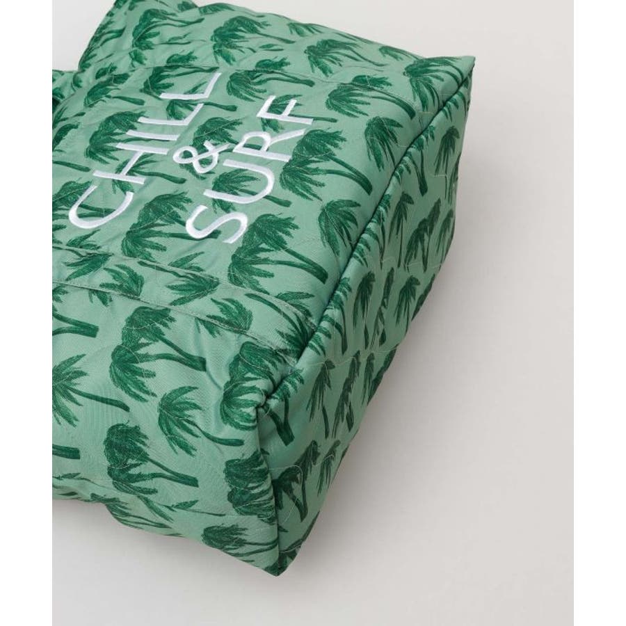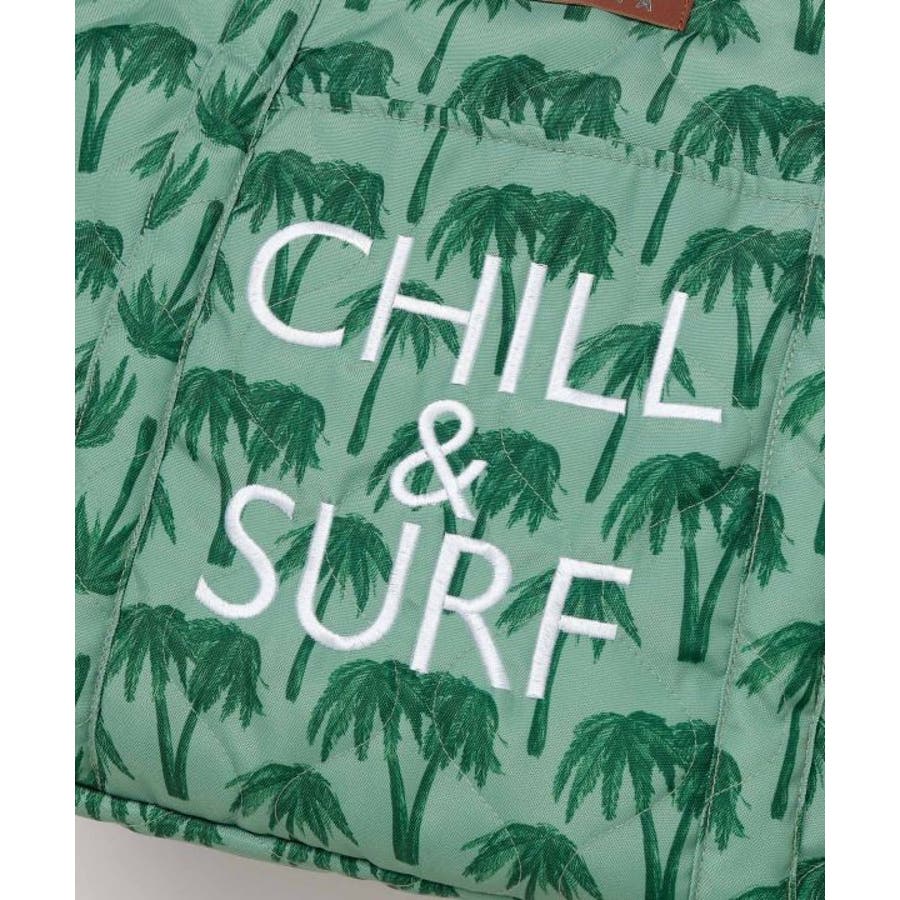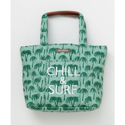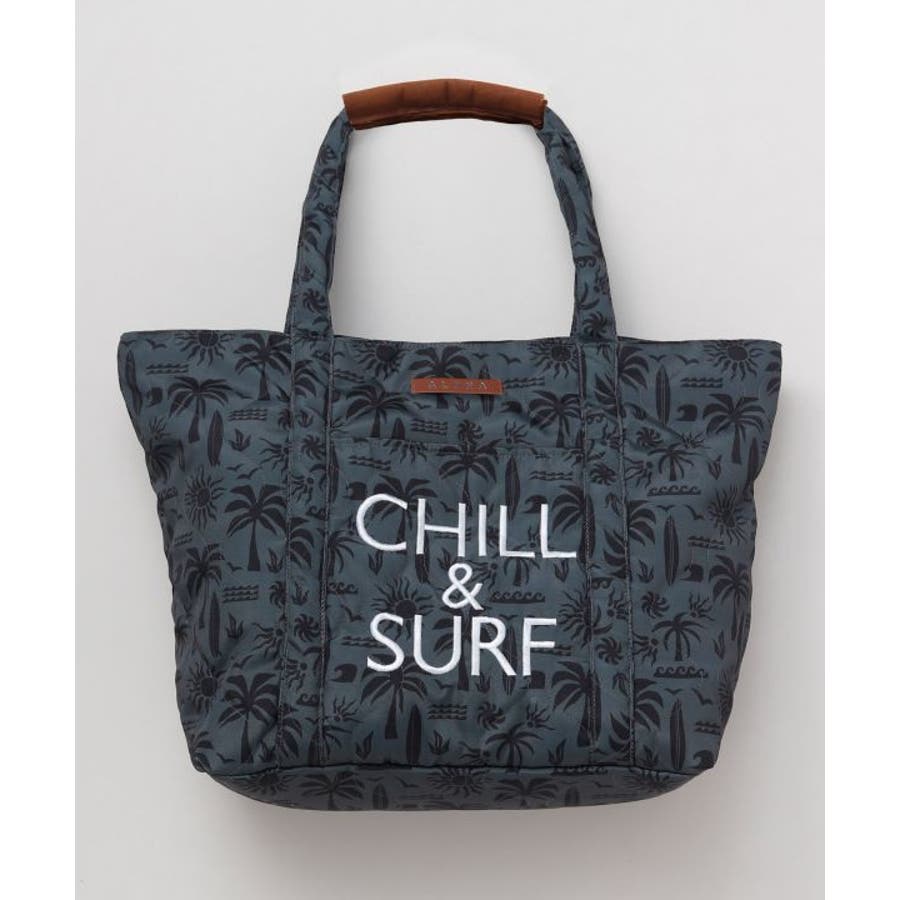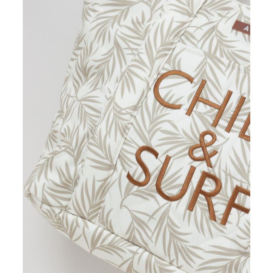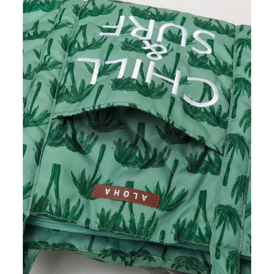 全面総柄のキルティングのバッグ。ファスナーが付いていて、外と内側にポケットがあり、とても使いやすいです。ALOHAのタグと刺しゅうがポイント。大きくて軽く、しっかりと起立するので、旅行にも便利です。持ち手がしっかりとしているので、重い荷物でも持ちやすいです。