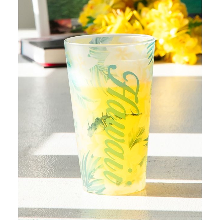 ハワイに咲いている上品なお花をあしらった、爽やかなデザインのグラス。トロピカルジュースを注げばおうちでハワイ気分を味わえます。