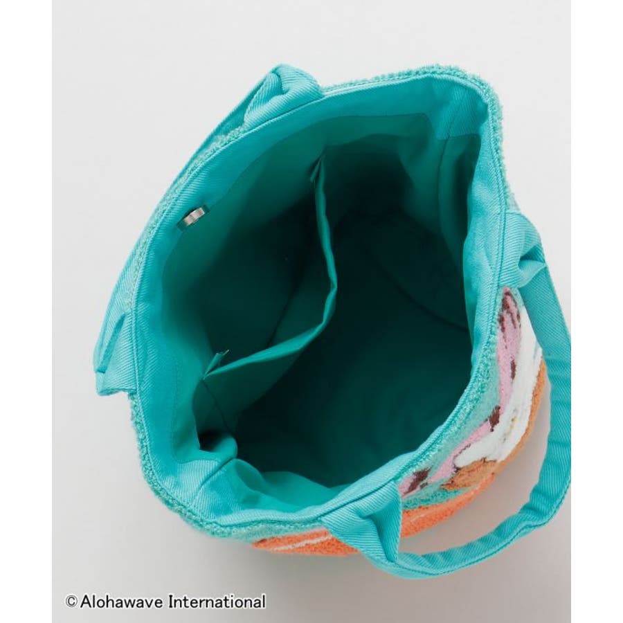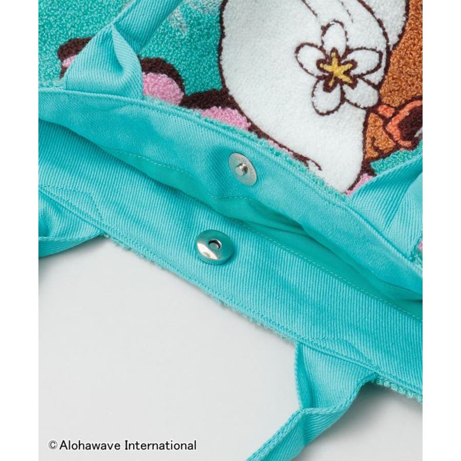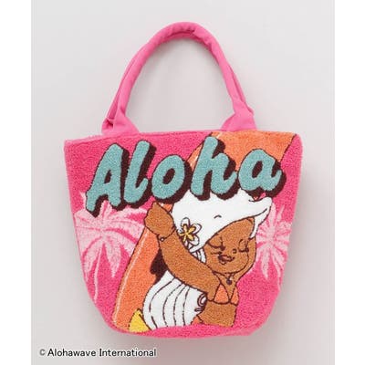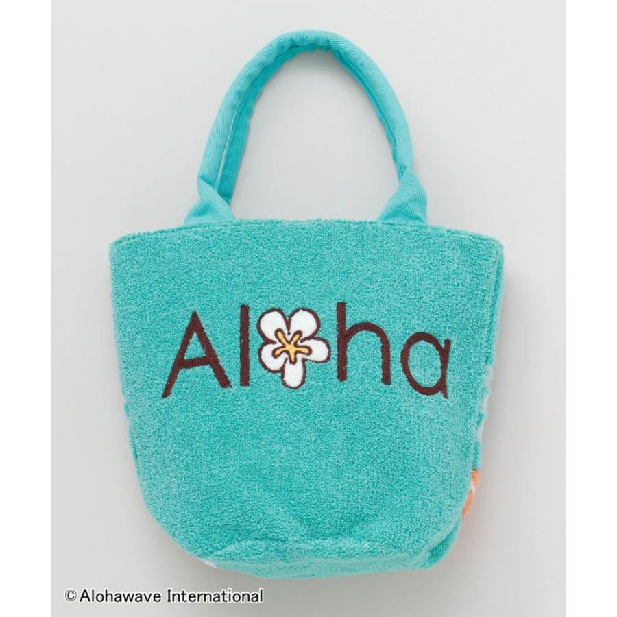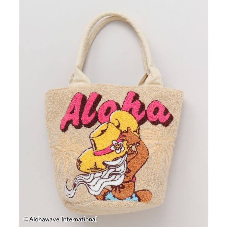【Kahiko×Aloha Mapua】サーフィンとファッションをこよなく愛するキャラクター「Aloha Mapua (アロハマプア)」のサガラ刺しゅうトートバッグ。後ろの面もAlohaの文字が。モチーフのお花は、いつもマプアちゃんが頭に付けているプルメリアになっています。内ポケット付き。