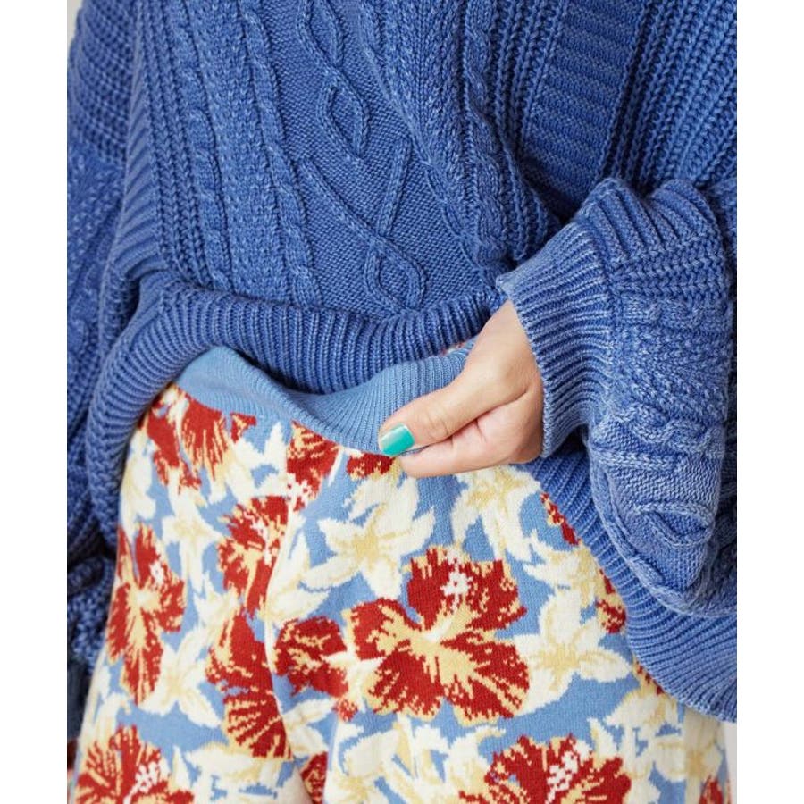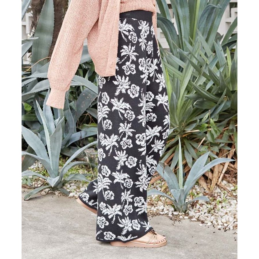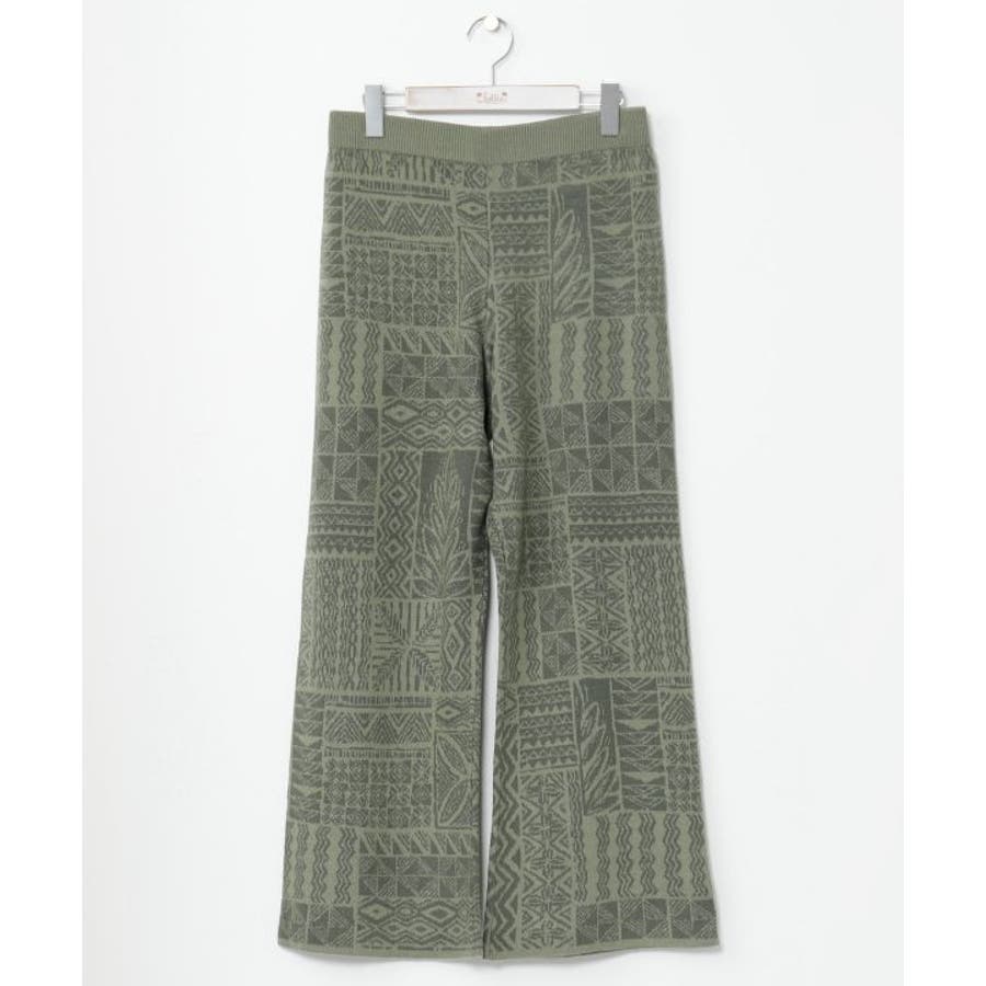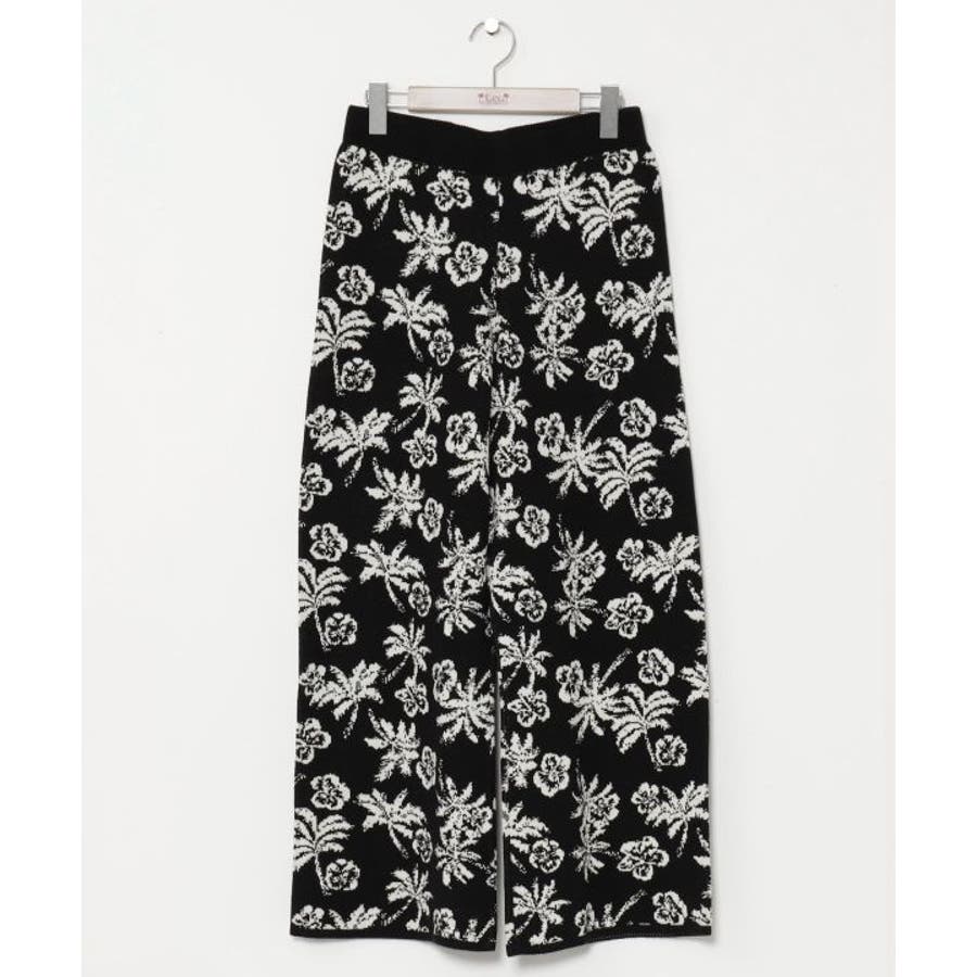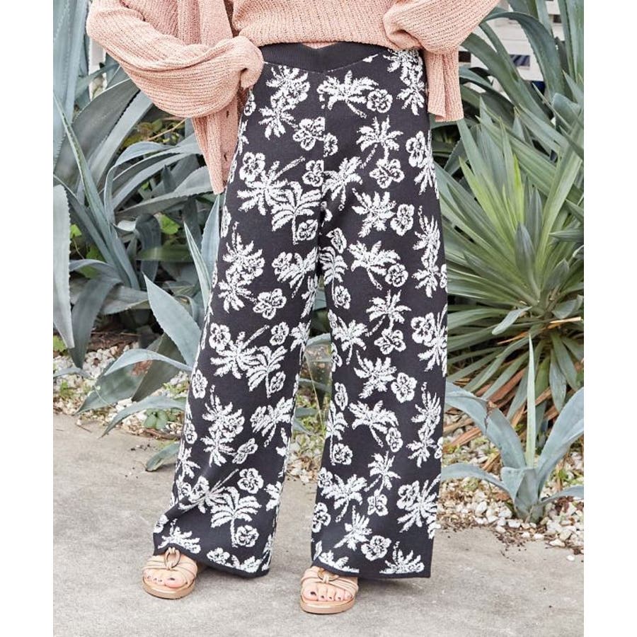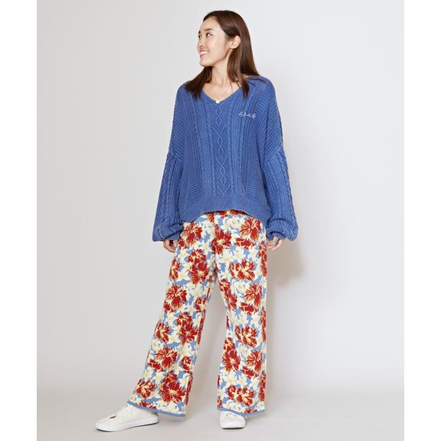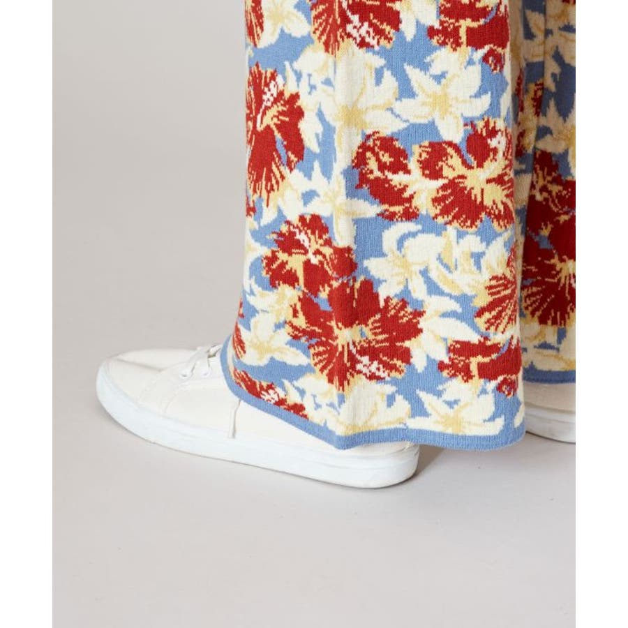 ゆったりと着られるニット素材のイージーパンツ。着心地の良さだけでなく、フレアなシルエットがスタイルアップにもつながります。それぞれの色味に合わせて描かれたハワイアン柄とともに、リラックスしたハワイアンタイムをお過ごしください。
