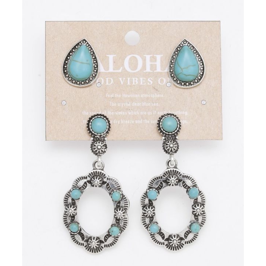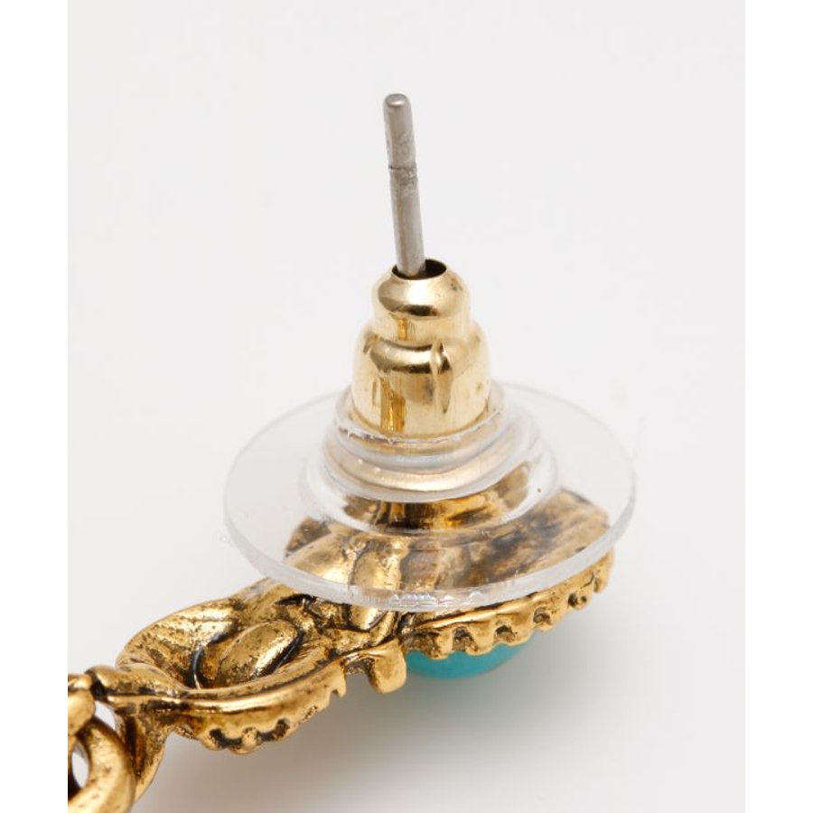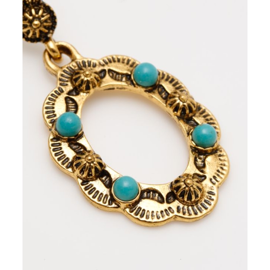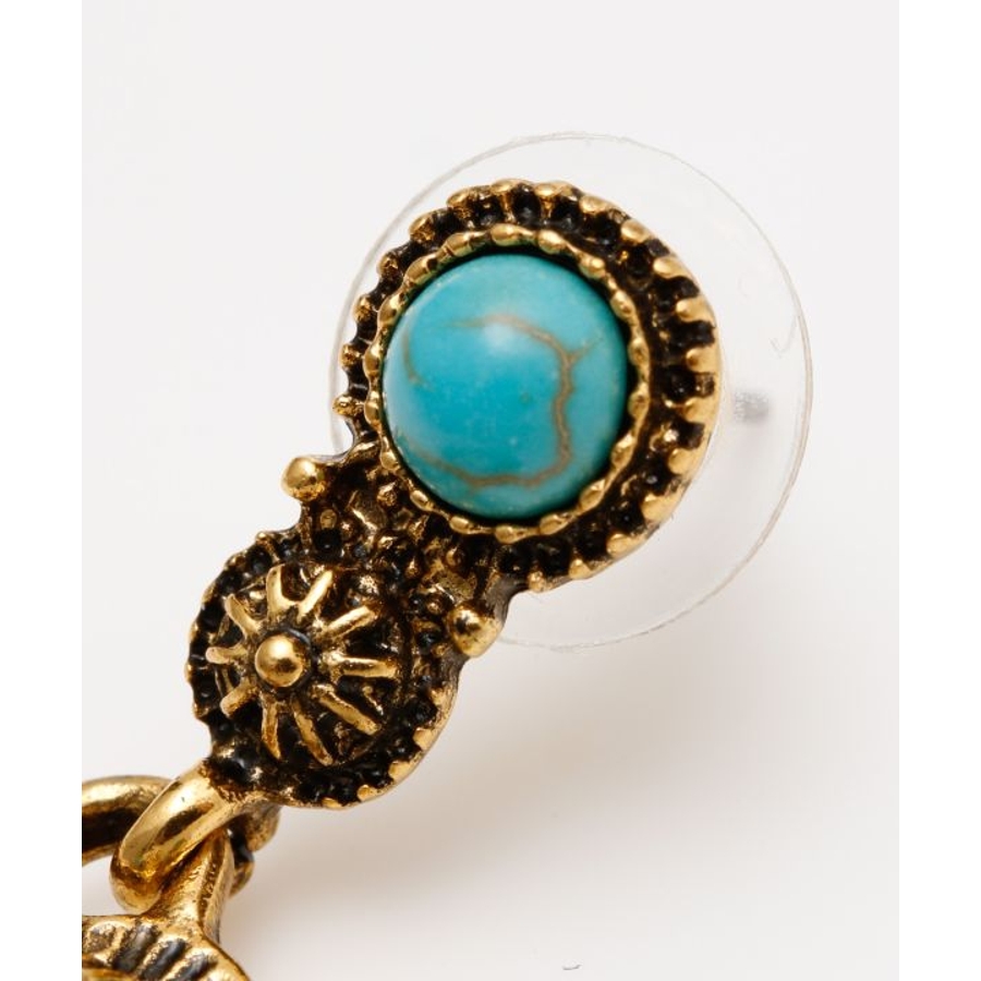 海を感じさせるターコイズカラーとアンティークメタルを組み合わせた、4点セットのピアス。大判のフープ型モチーフがポイント。その日の気分やコーディネートで自由な組み合わせを楽しめます。
