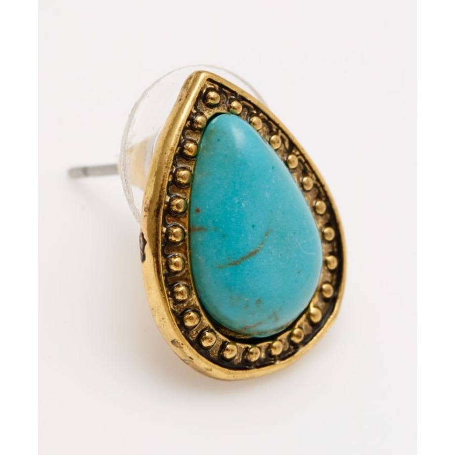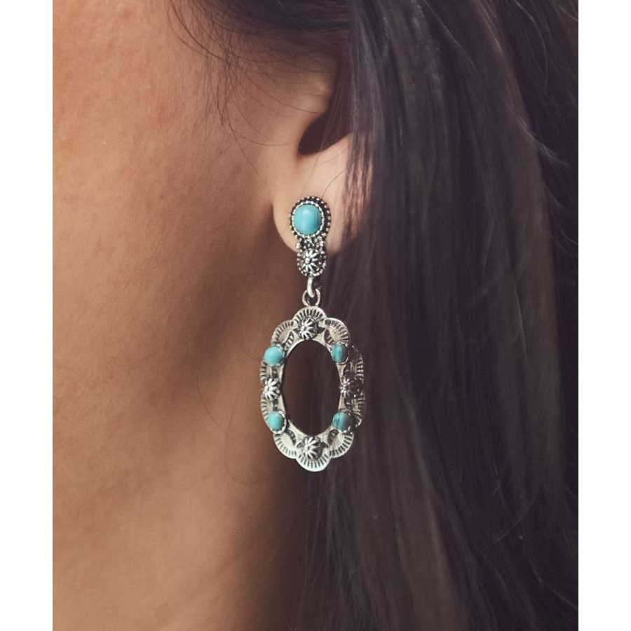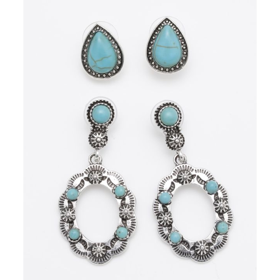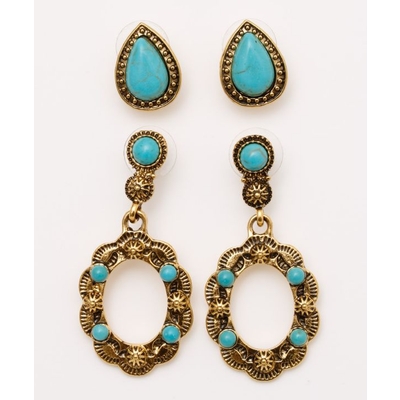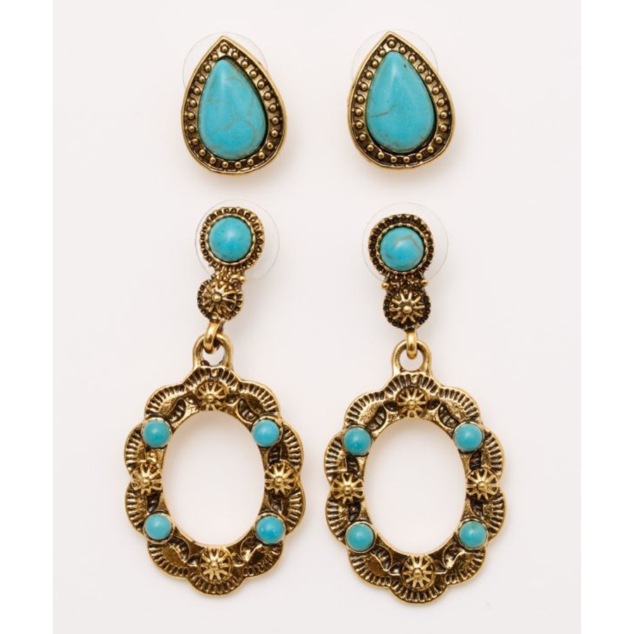 海を感じさせるターコイズカラーとアンティークメタルを組み合わせた、4点セットのピアス。大判のフープ型モチーフがポイント。その日の気分やコーディネートで自由な組み合わせを楽しめます。
