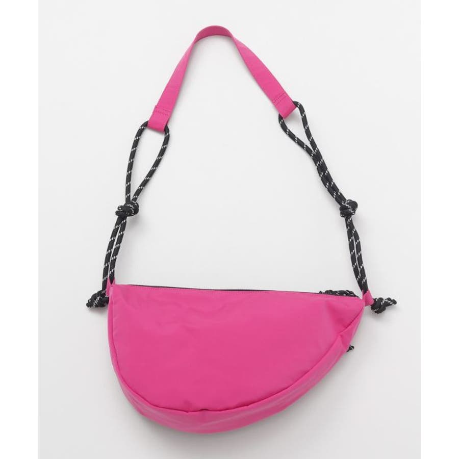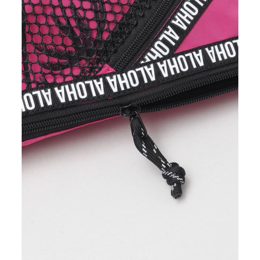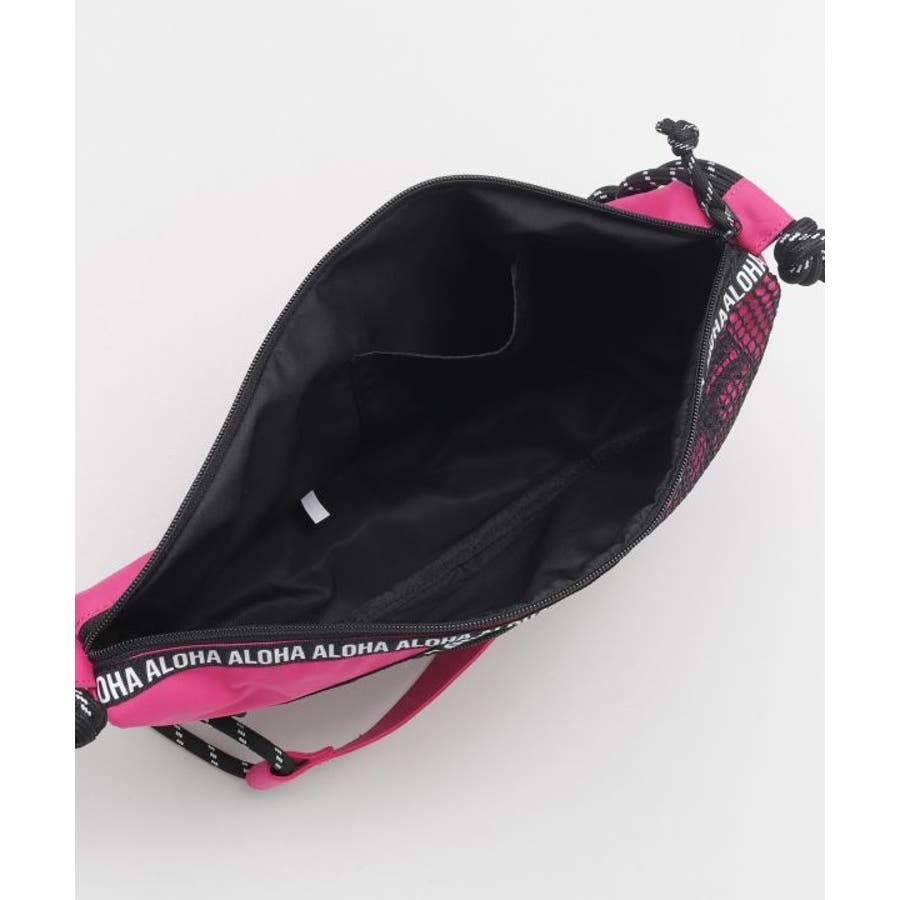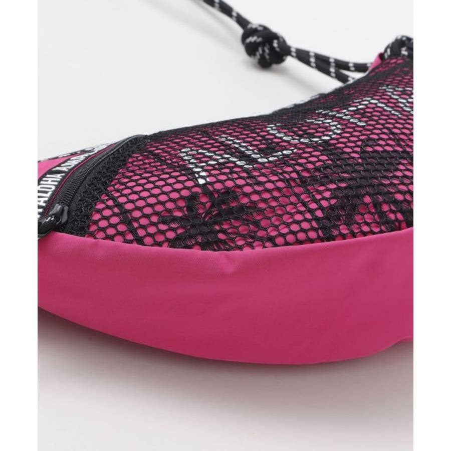 スポーティなカラーリングのメッシュポケット付きショルダーバッグ。パームツリーのシルエットとメッシュの外ポケットがポイント。三日月型なので収納力もあり、アクティブシーンにおすすめです。