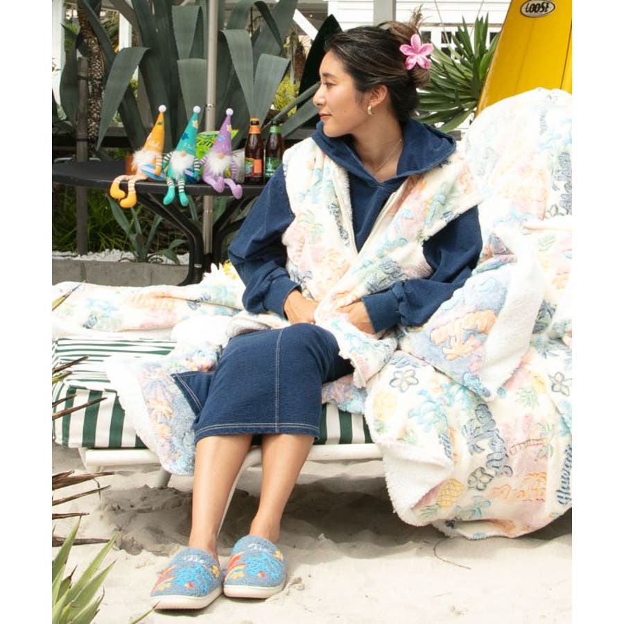 ハワイで人気のホヌ柄がサガラ刺繍されたスリッパ 。インソールが低反発クッションなので、長時間はいても疲れにくいです。ハワイの明るいデザインは、お家の中で過ごす時間をわくわくさせてくれます。