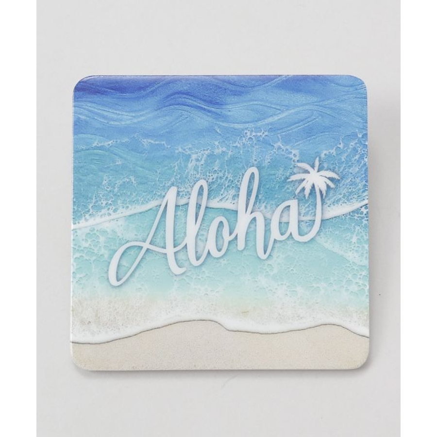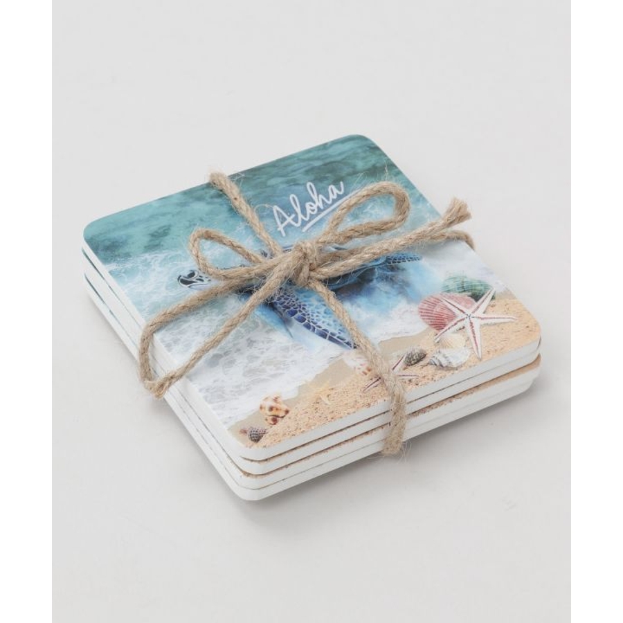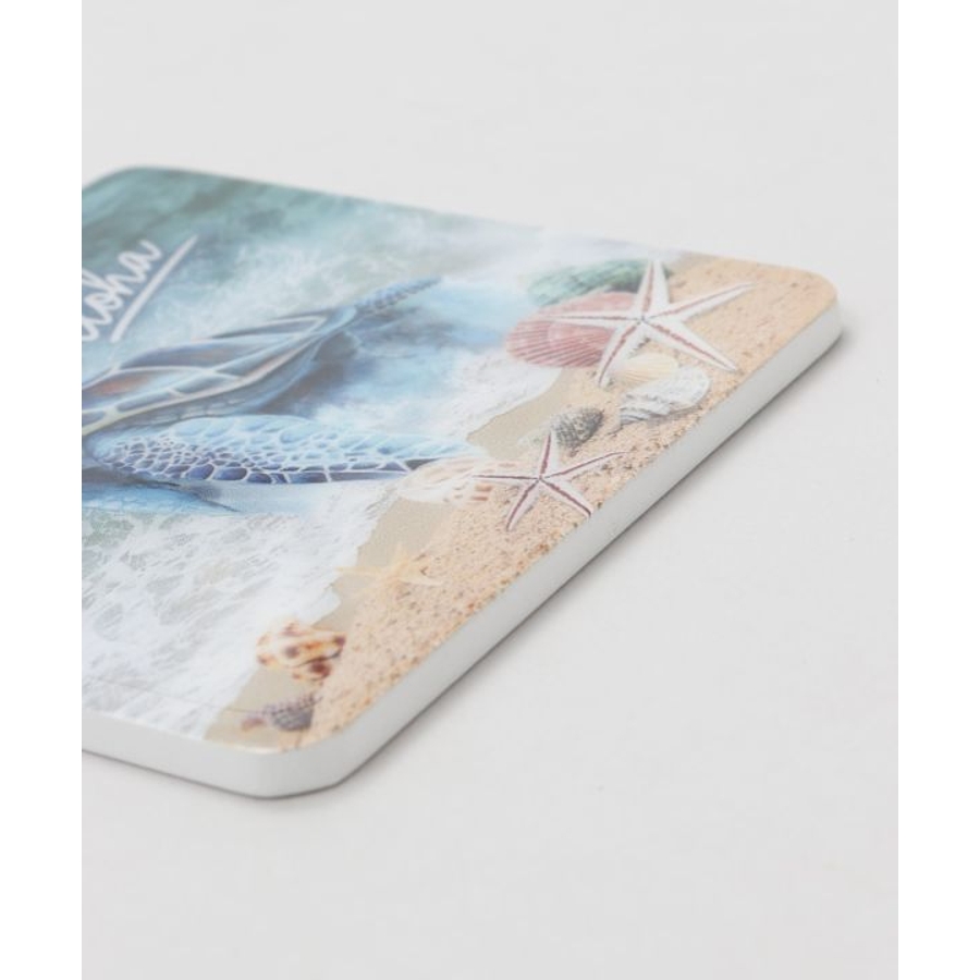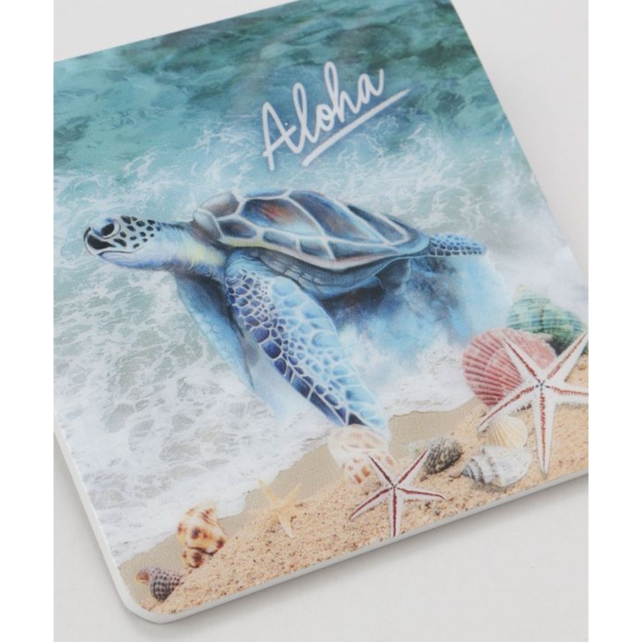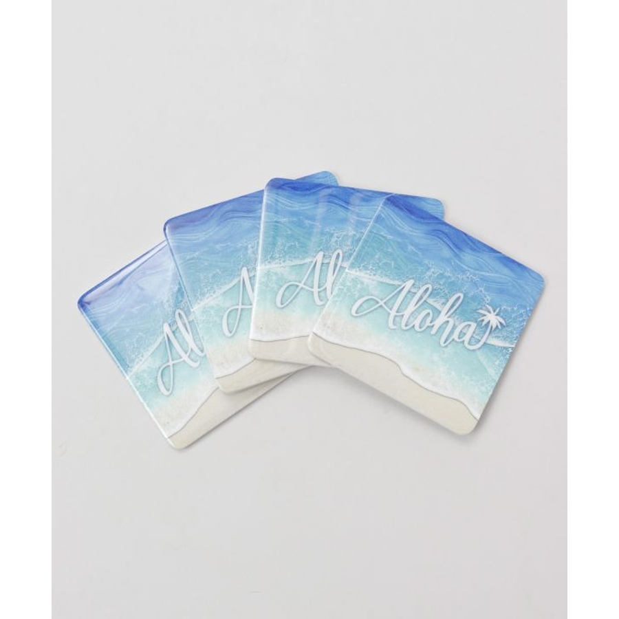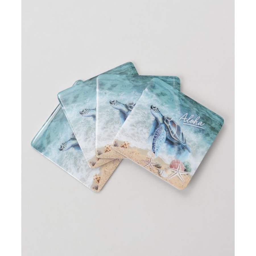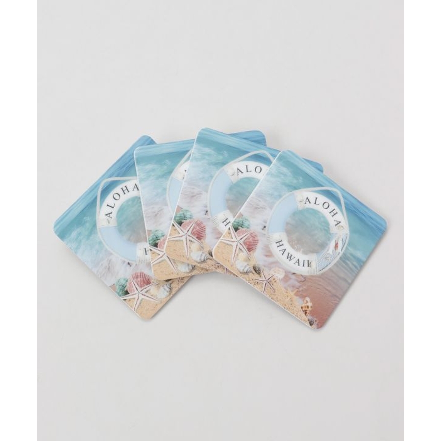 ハワイの綺麗なビーチがプリントされたコースター4枚セット。表面は艶のある素材なのでとっても涼しげのあるデザインです。