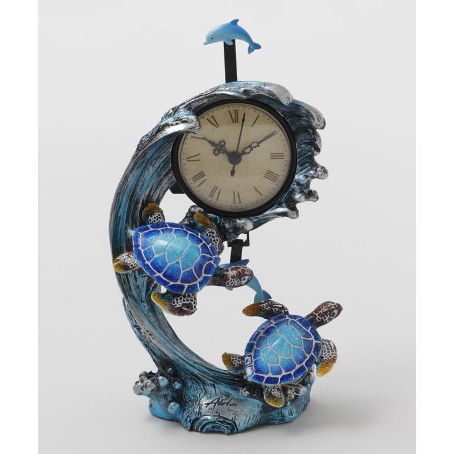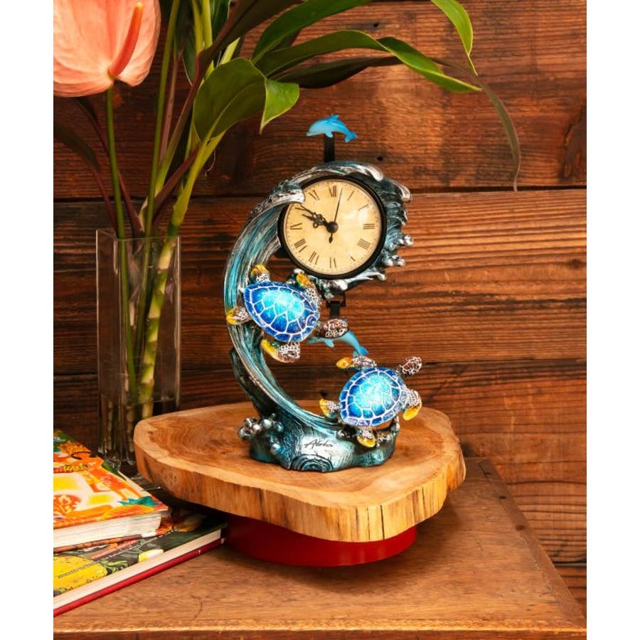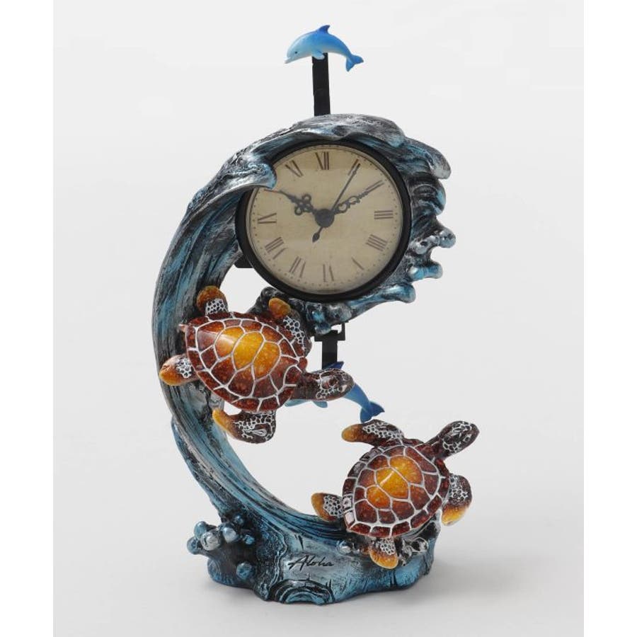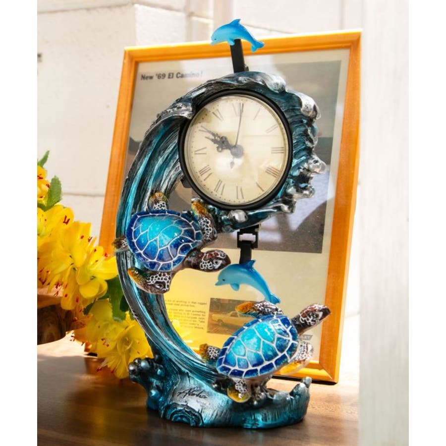 ハワイの海を優雅に泳ぐホヌとナイア(イルカ)のフィギュアクロック。自然豊かなハワイの海を泳ぐホヌの姿をおうちでも。