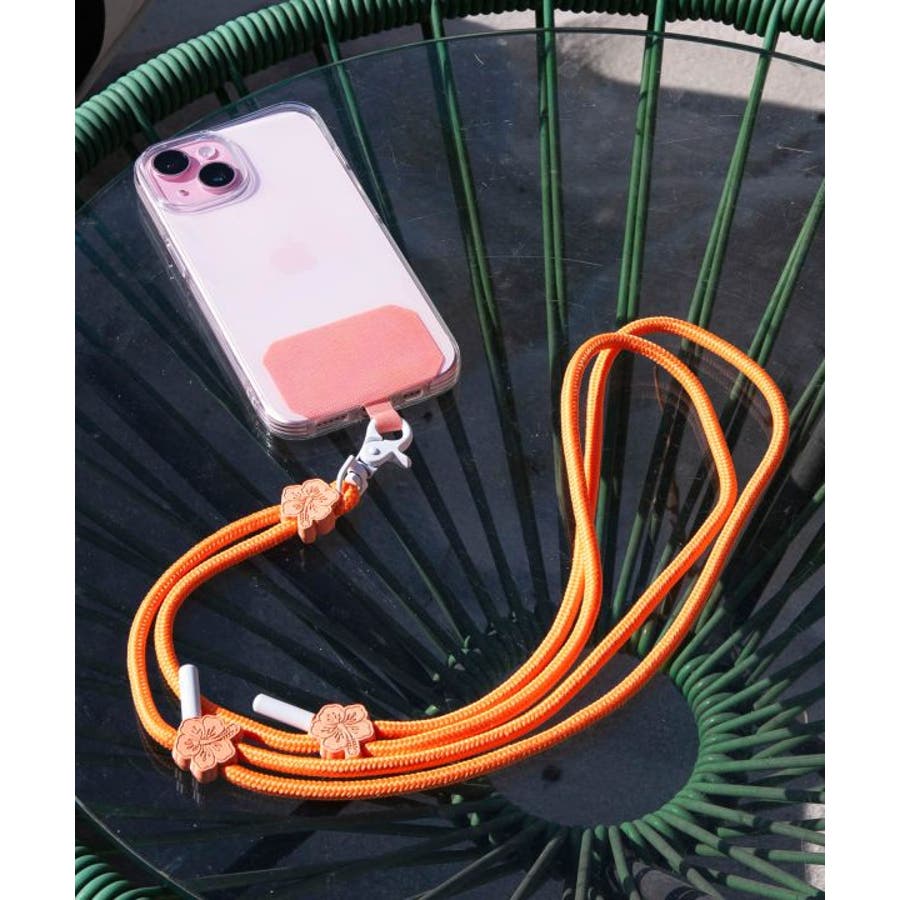 お手持ちのスマホケースに挟むだけでハワイを感じられる、カラフルなスマホネックストラップ。ホヌとハイビスカスのモチーフが付いたアジャスターがポイント。長さ調節可能。