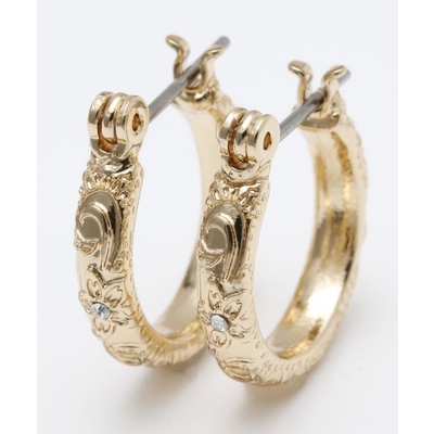 ハワイアンジュエリー調の刻印を施したフープピアス。プルメリア、ナルが彫られているデザイン。シンプルなフープタイプなので、普段使いにおすすめ。