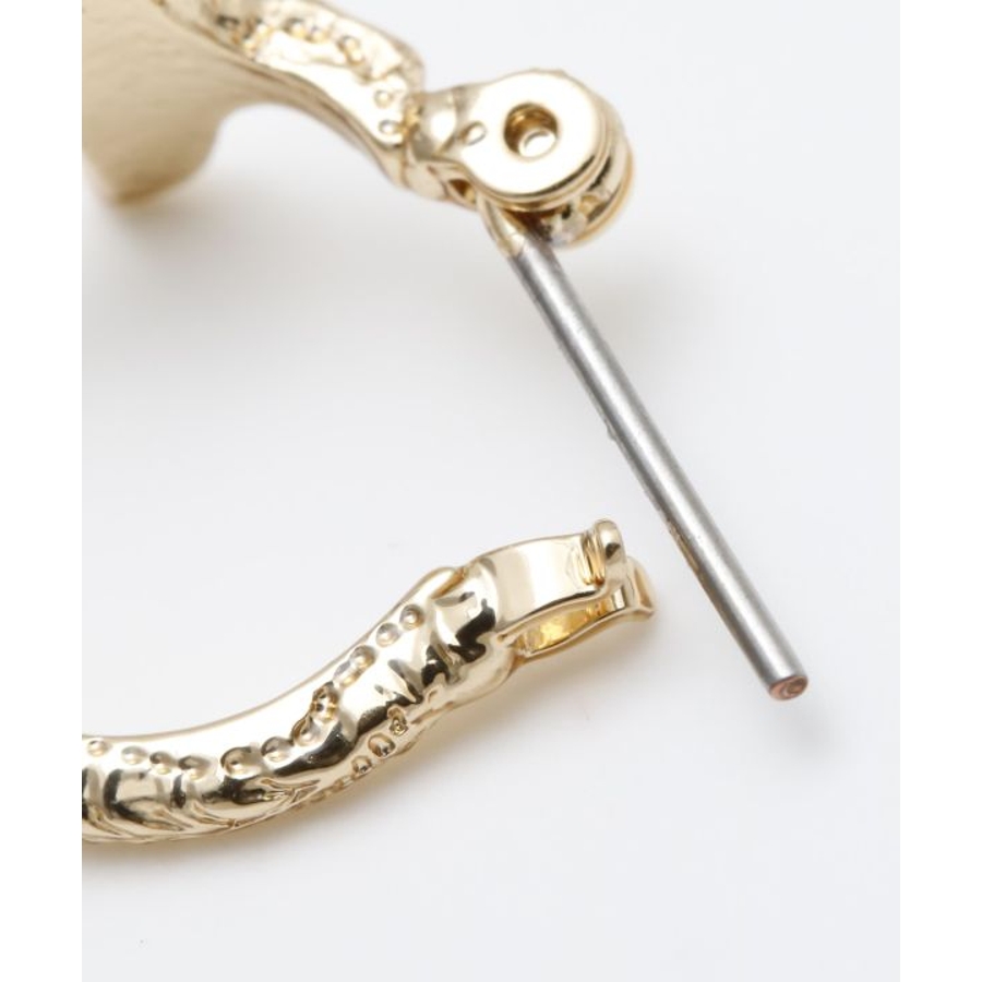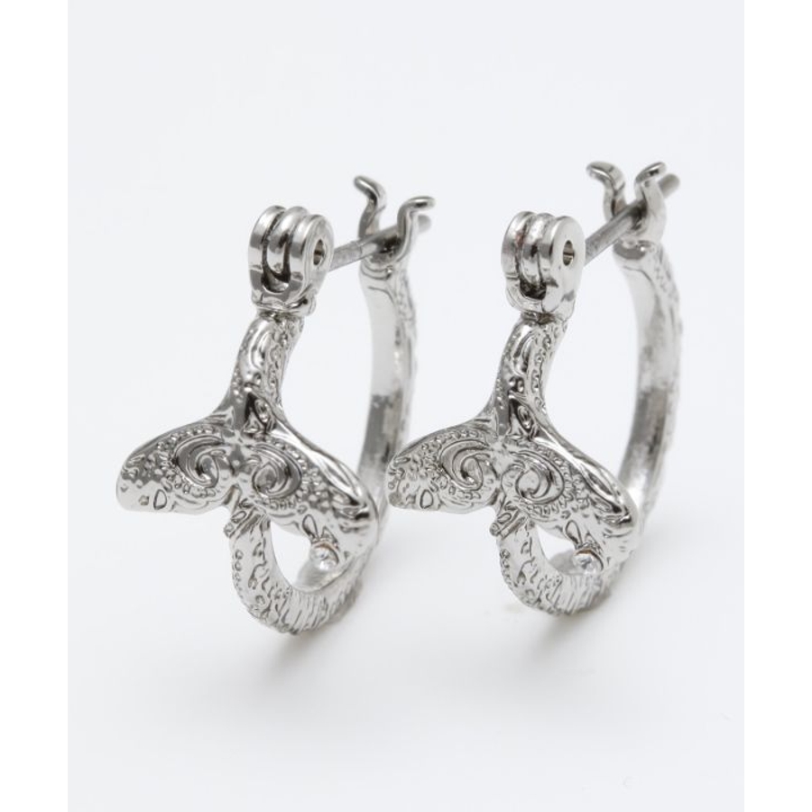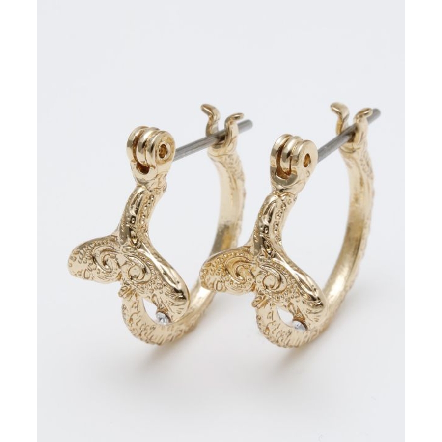 ハワイアンジュエリー調の刻印を施したフープピアス。ホエール、マイレ、ナルが彫られているデザイン。シンプルなフープタイプなので、普段使いにおすすめ。