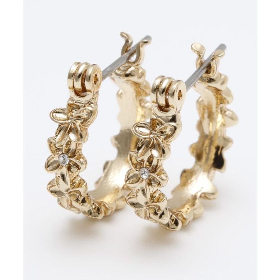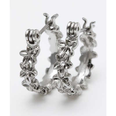 ハワイアンジュエリー調の刻印を施したフープピアス。モチーフのプルメリアには女性の魅力を引き出す力があるといわれています。お顔周りを華やかにしてくれます。