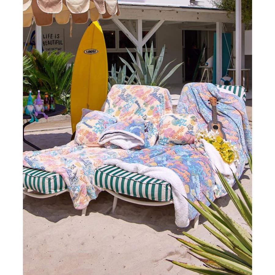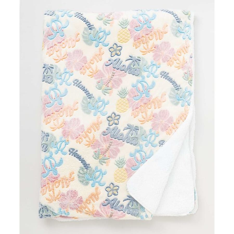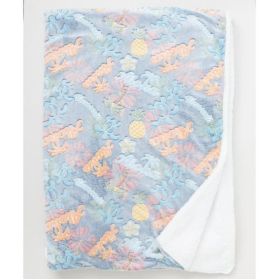 ポップなカラーリングでハワイのモチーフがぎゅっと詰まったブランケット。XLサイズはベッドやソファーの掛けカバーとして、ちょっとした敷物としてちょうど良いサイズ。パッカブル仕様になっていて、折りたたんでクッションとしても使用できます。凹凸のある生地感で手触りの良いシリーズは、身も心も温まるプレゼントとしても喜ばれます。