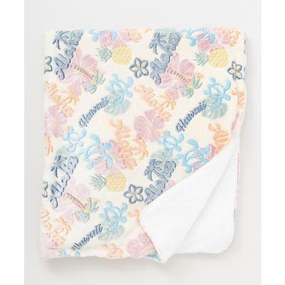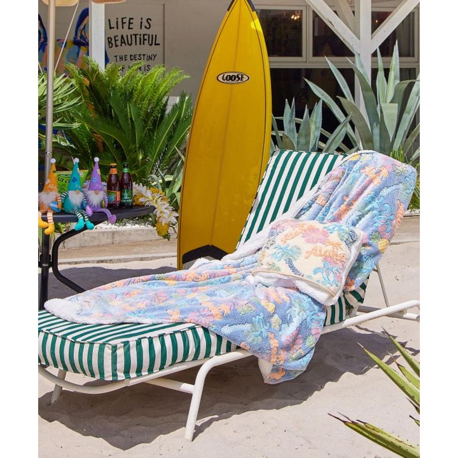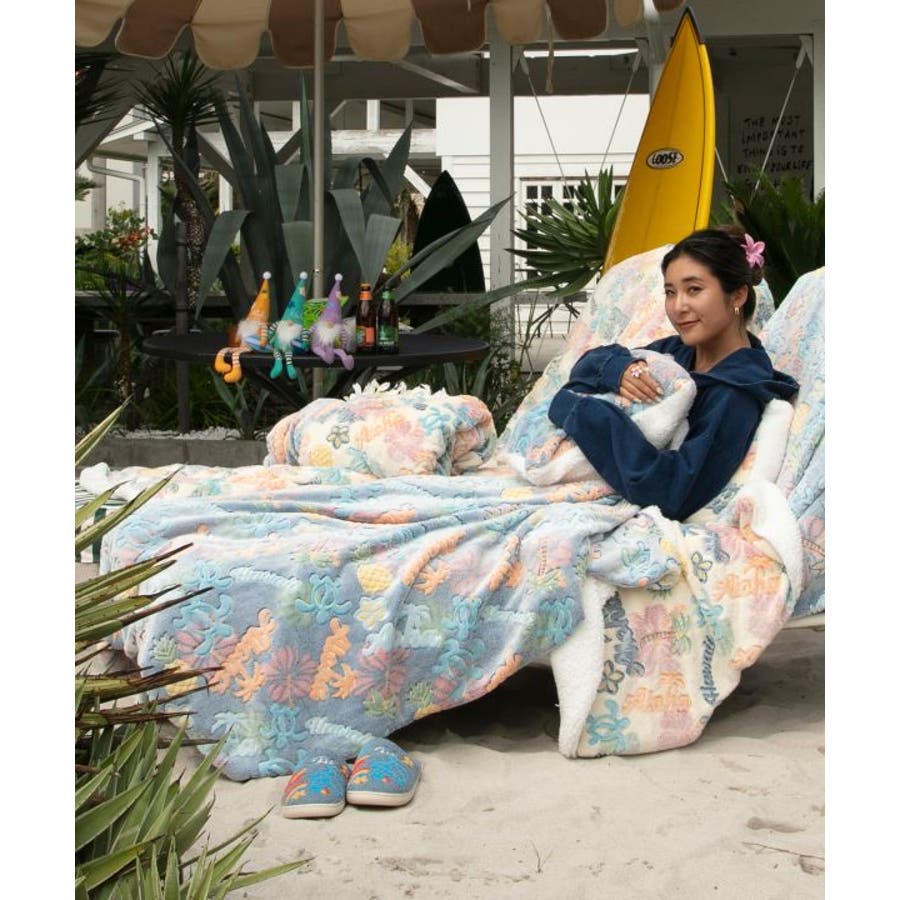 ポップなカラーリングでハワイのモチーフがぎゅっと詰まったブランケット。Lサイズはベッドやソファーの掛けカバーとしてちょうど良いサイズ。パッカブル仕様になっていて、折りたたんでクッションとしても使用できます。凹凸のある生地感で手触りの良いシリーズは、身も心も温まるプレゼントとしても喜ばれます。
