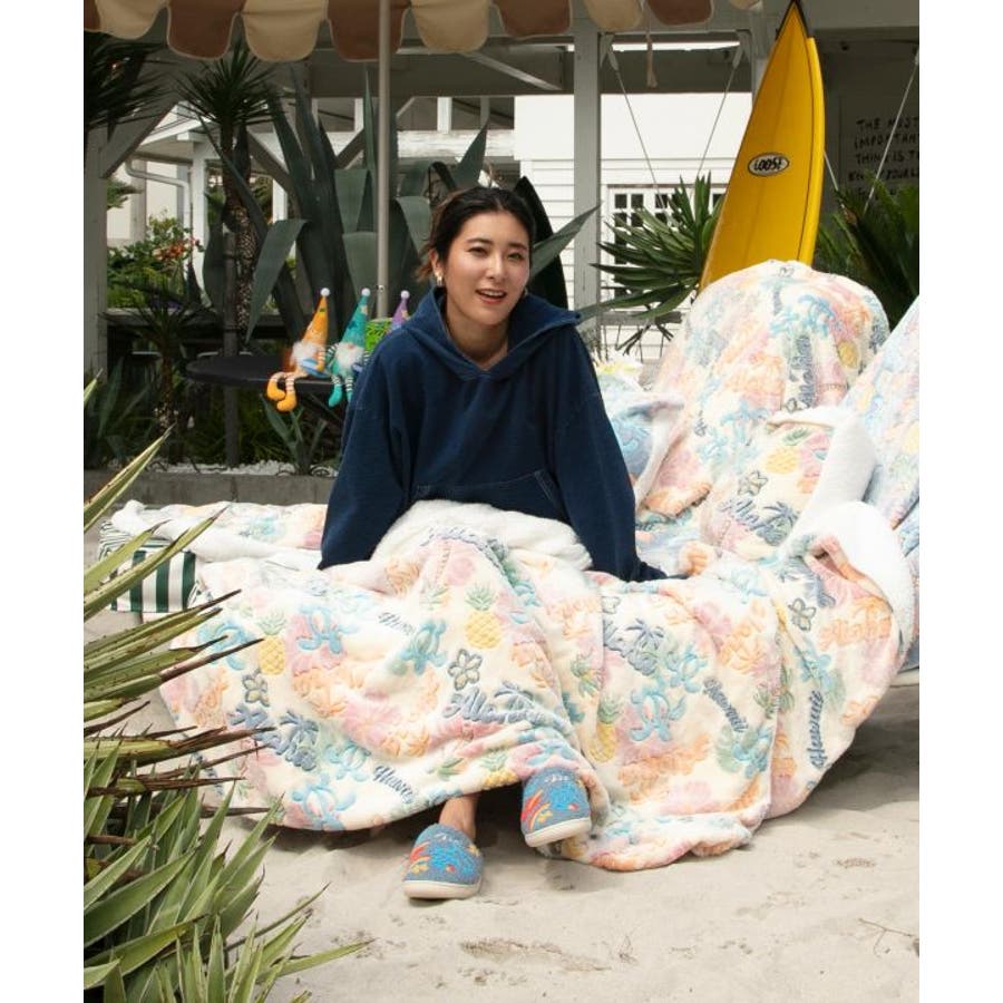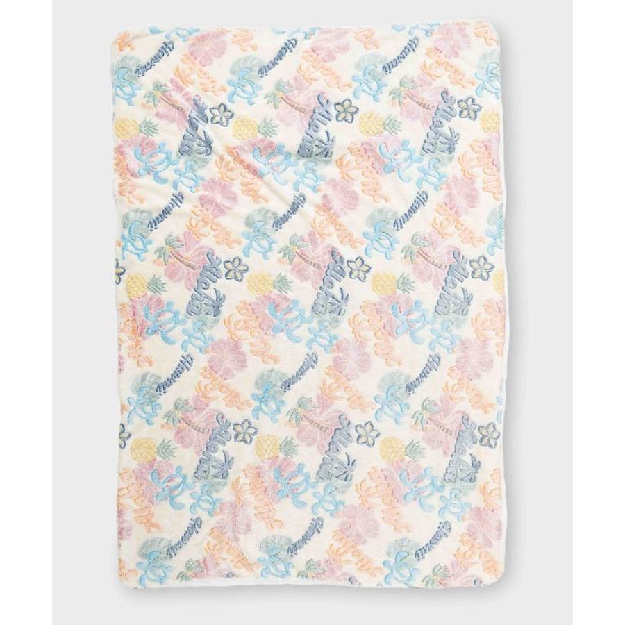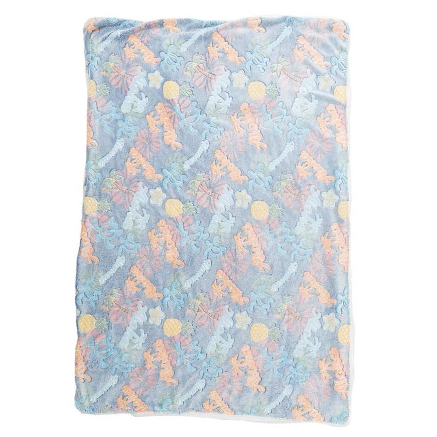 ポップなカラーリングでハワイのモチーフがぎゅっと詰まったブランケット。Mサイズはひざ掛けや肩掛けとしてちょうど良いサイズ。凹凸のある生地感で手触りの良いシリーズは、身も心も温まるプレゼントとしても喜ばれます。