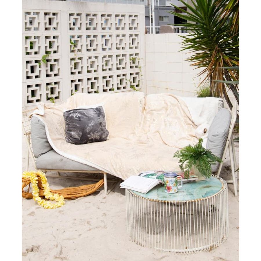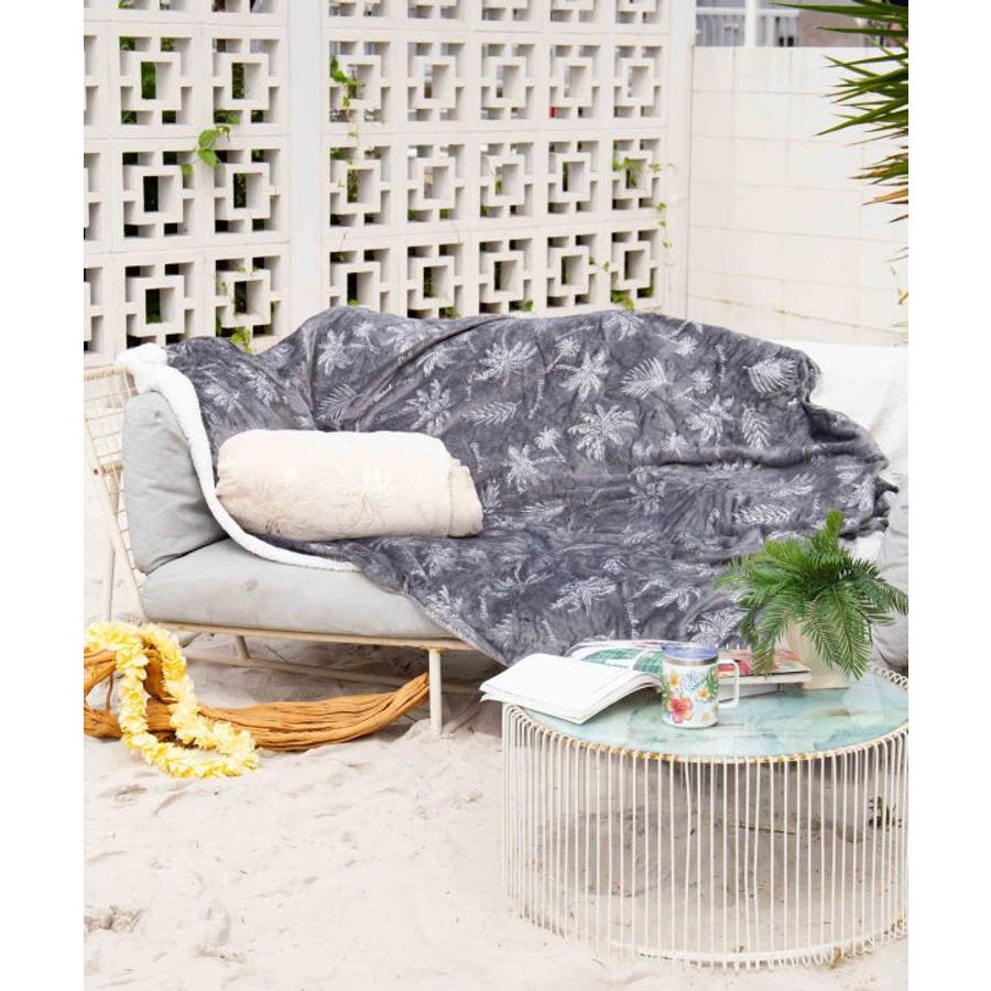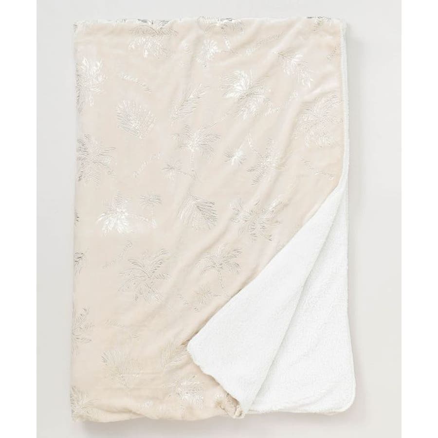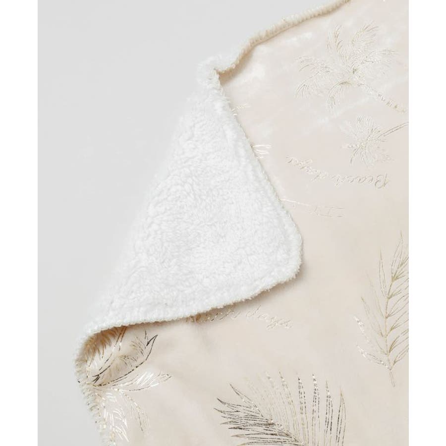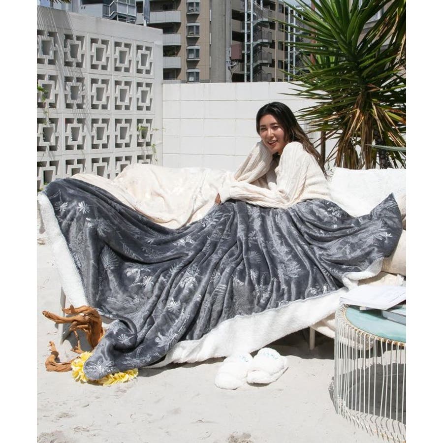 上品なヤシ柄が箔プリントされた大人な雰囲気のブランケットが登場。生地は肉厚で暖かく、表は滑らかなフリース、裏はしっとりとしたボアで仕上げられています。