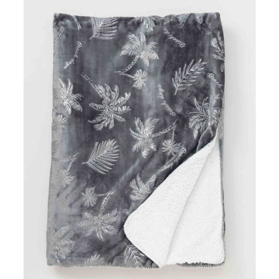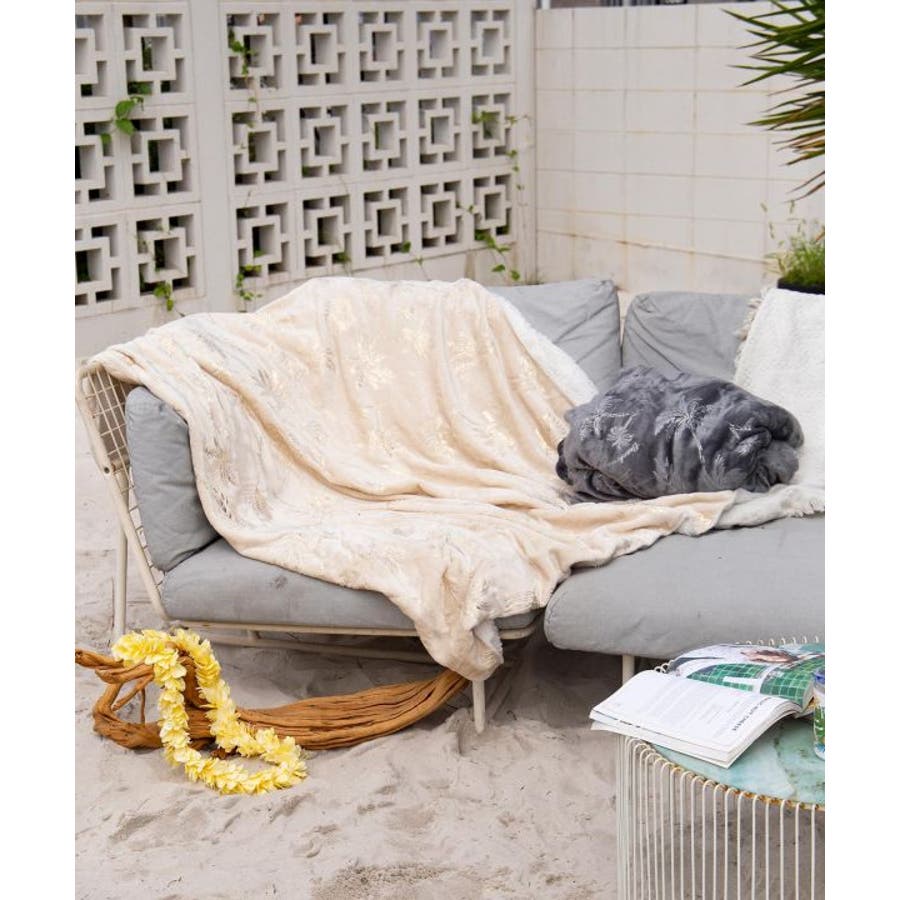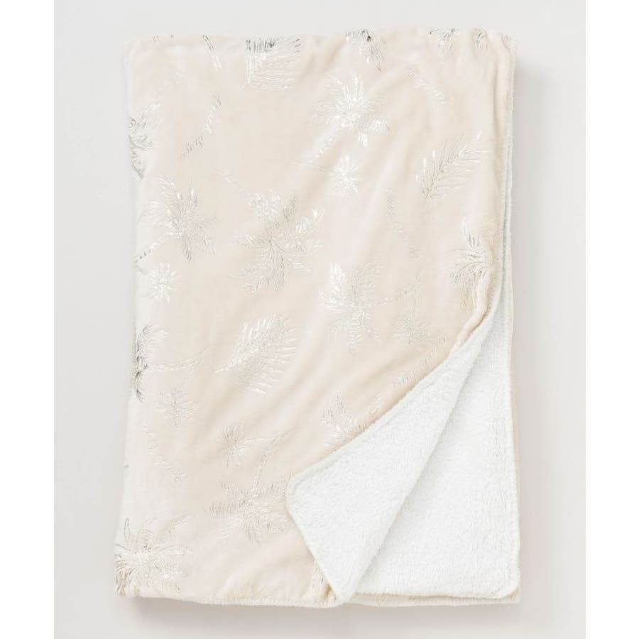 上品なヤシ柄が箔プリントされた大人な雰囲気のブランケットが登場。生地は肉厚で暖かく、表は滑らかなフリース、裏はしっとりとしたボアで仕上げられています。