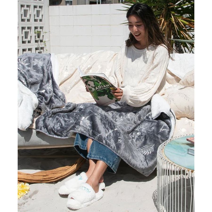 上品なヤシ柄が箔プリントされた大人な雰囲気のブランケットが登場。生地は肉厚で暖かく、表は滑らかなフリース、裏はしっとりとしたボアで仕上げられています。