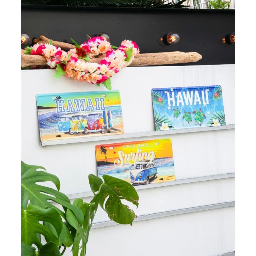 壁にかけてお部屋でもハワイを感じれるデザインのライセンスプレート。壁に並べて飾ったり、置いて飾っても素敵です。お部屋の雰囲気に合わせて飾るとグッとハワイの雰囲気に。