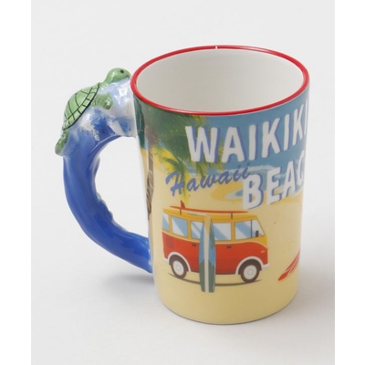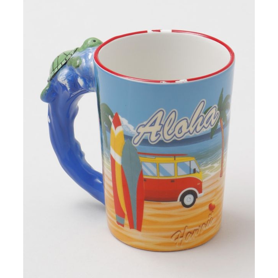 持ち手にホヌ(ウミガメ)モチーフが施されたポップなカラーリングのマグカップ。ホヌは幸運をもたらしてくれる生き物と云われています。大切なオハナに贈ってみてはいかがでしょうか。