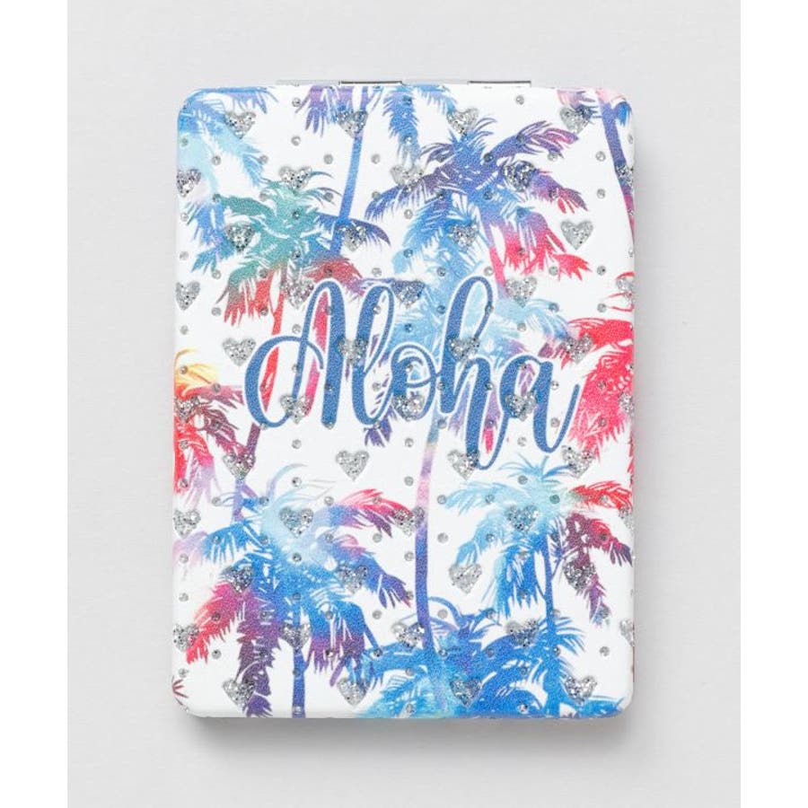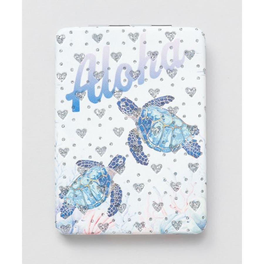 キラキラとしたハートがちりばめられたコンパクトミラー。片方は拡大鏡になっています。ギフトにもおすすめです。