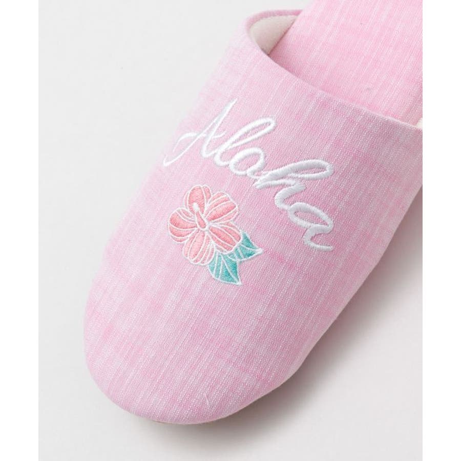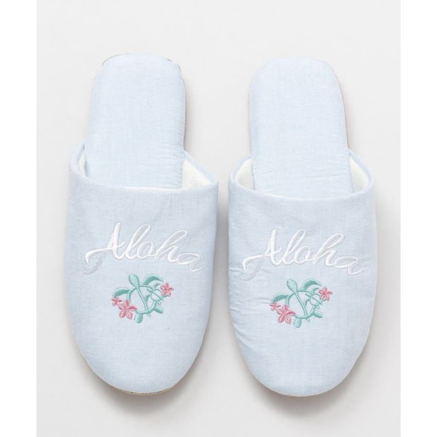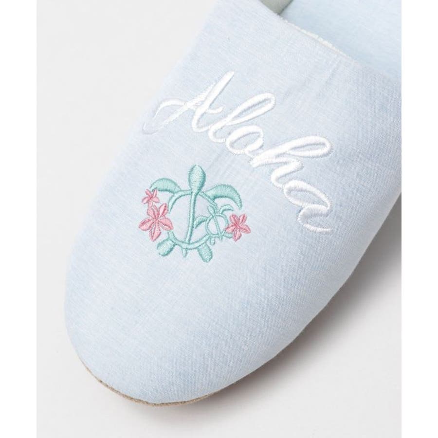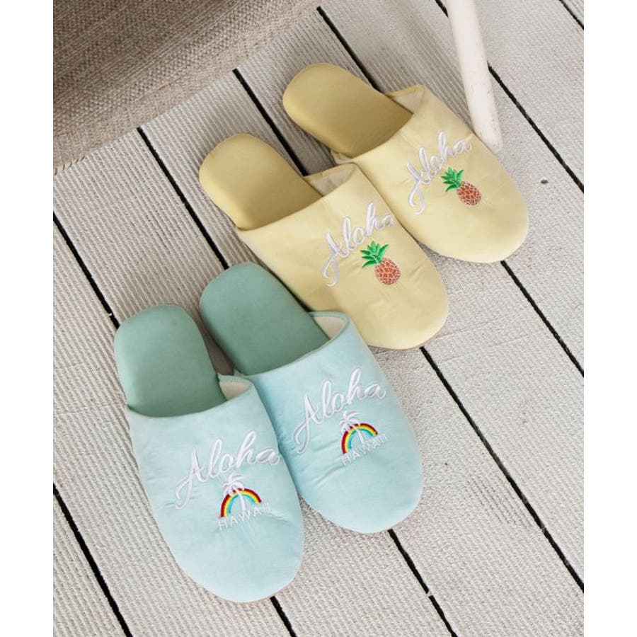 ハワイモチーフのワンポイント刺しゅうが入ったスリッパ。お部屋のイメージに合うモチーフを見つけてコーディネートできます。