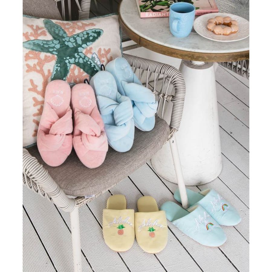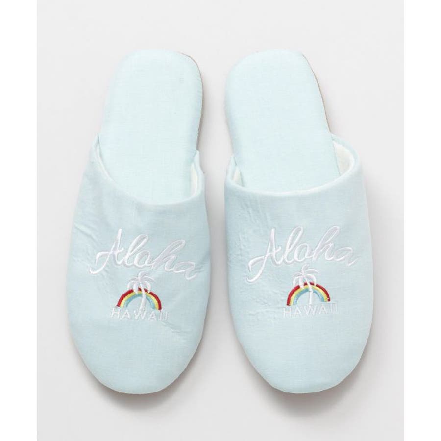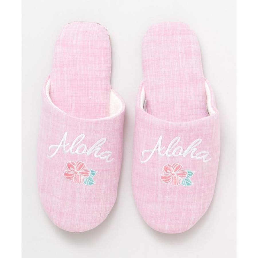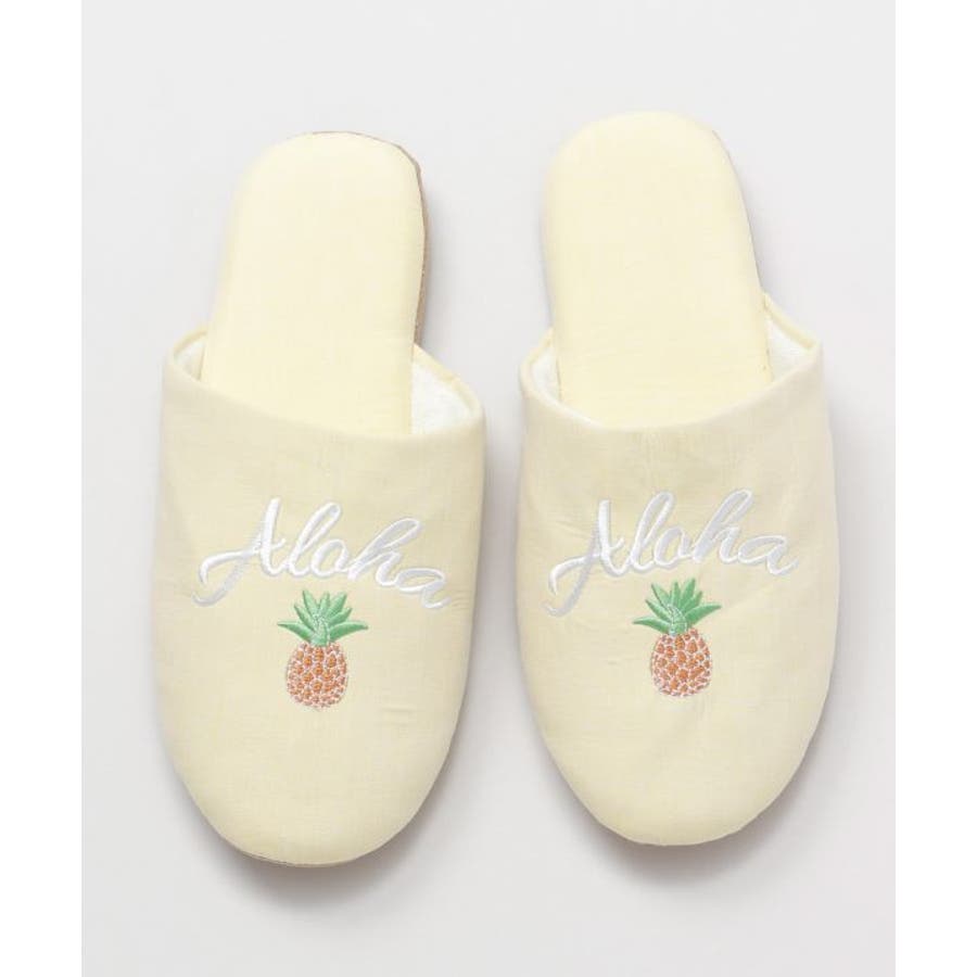 ハワイモチーフのワンポイント刺しゅうが入ったスリッパ。お部屋のイメージに合うモチーフを見つけてコーディネートできます。