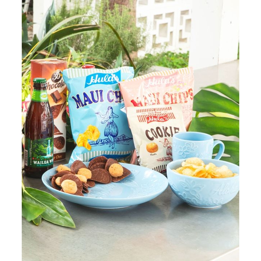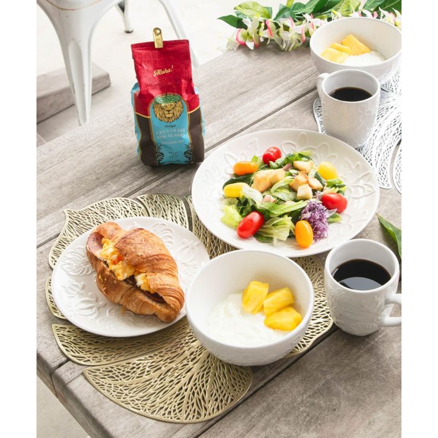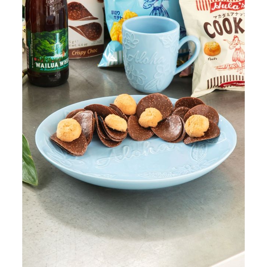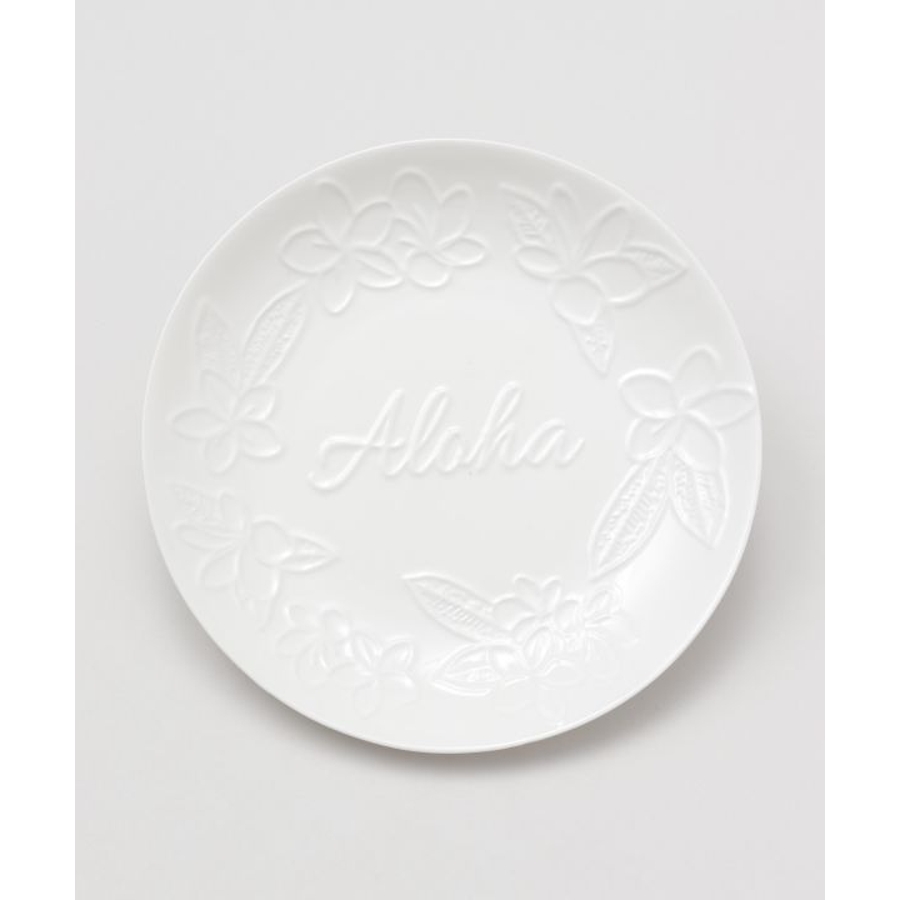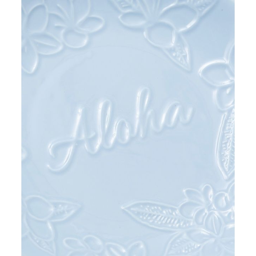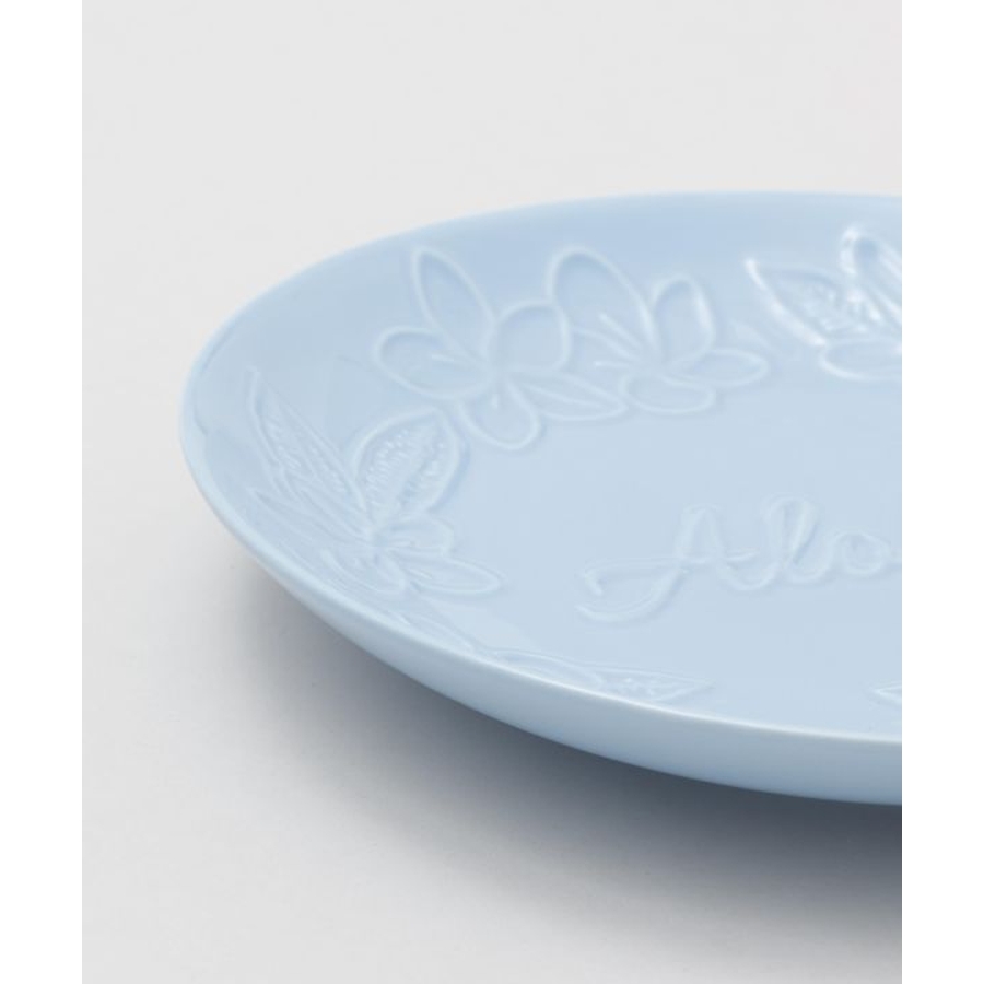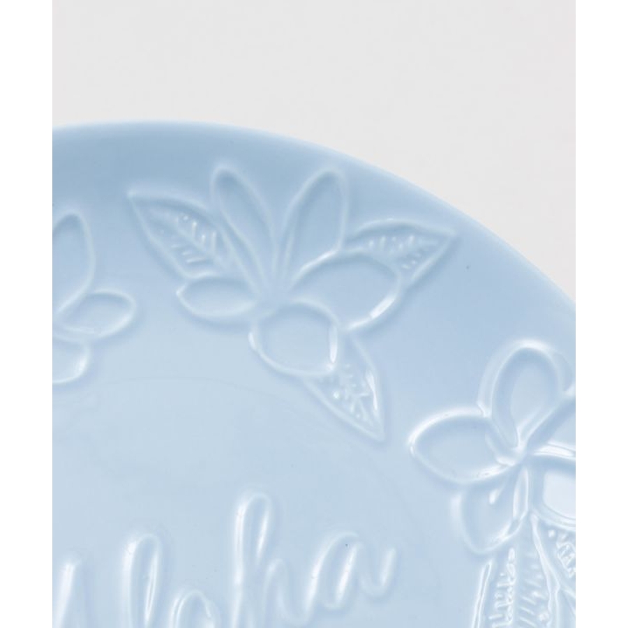 華やかなプルメリアのモチーフがデザインされたプレート。爽やかなカラーリングと、エンボス加工で凹凸のあるデザインがハワイのカフェを彷彿とさせます。