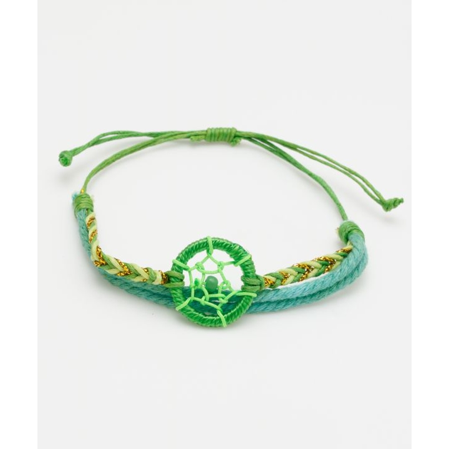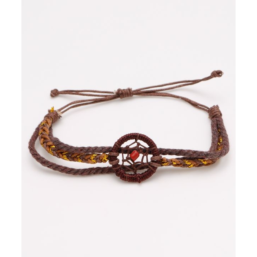 悪い夢をキャッチし、良い夢だけを通してくれるといわれる「ドリームキャッチャー」をモチーフにしたブレスレット。ミサンガのような編みこみで、幸運を呼んでくれそうです♪
