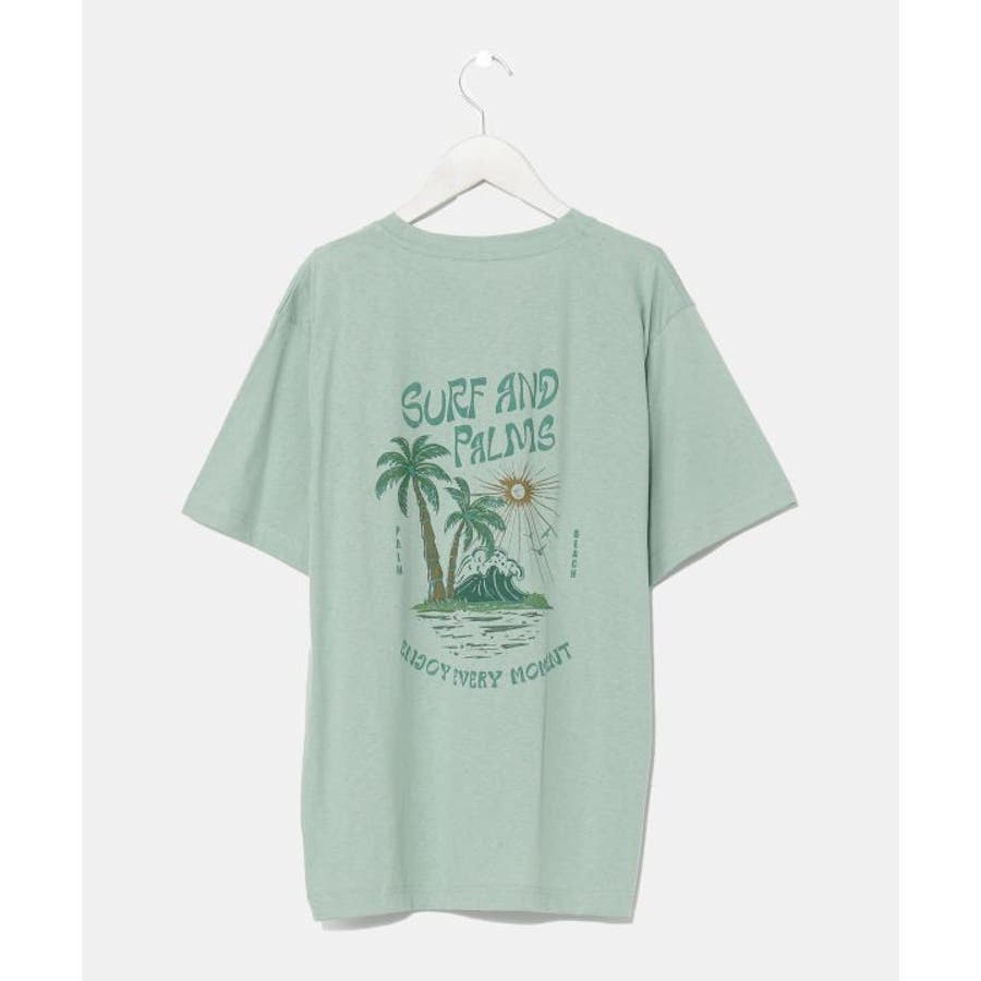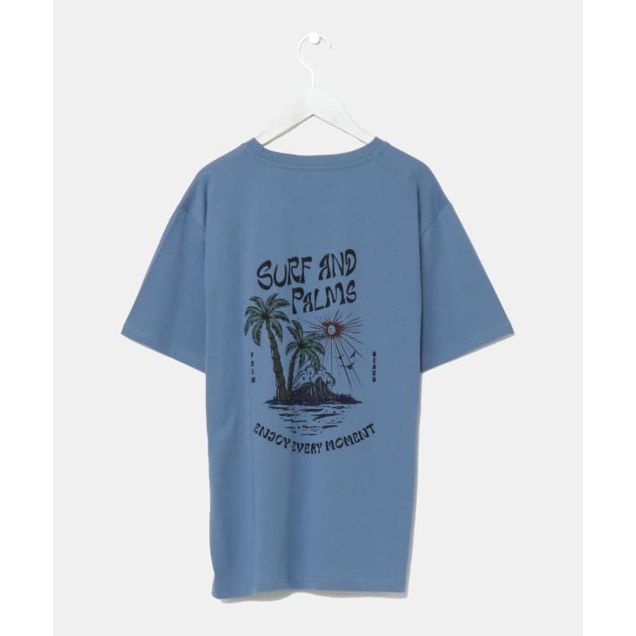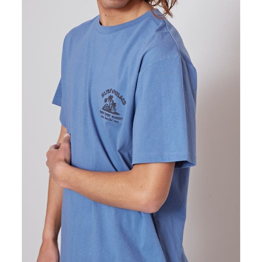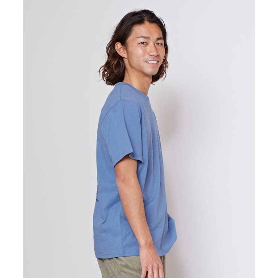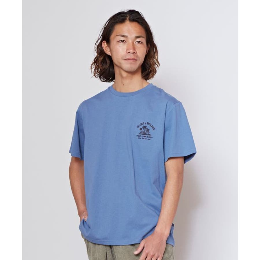 薄手のメンズTシャツ。ゆったりとしたシルエット。サーフシーンをイメージしたバックプリントと、フロントのさりげないフロッキープリントがポイントです。